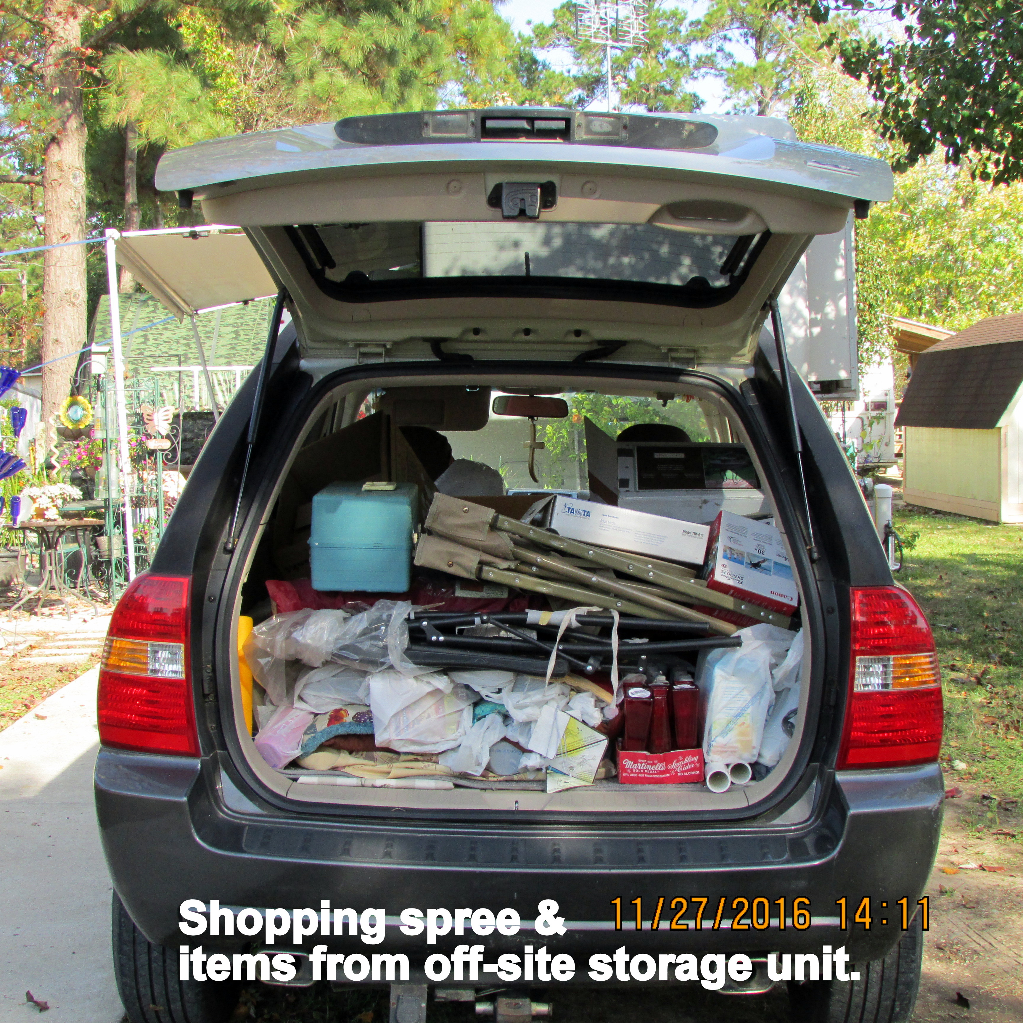 En route home, I stopped at the mini-storage to pay the fee for next month–and load as much as possible into the KIA. I plan to empty the unit within the next month; I hope the weather (and my energy) cooperates. Things don’t always go as I have planned!!