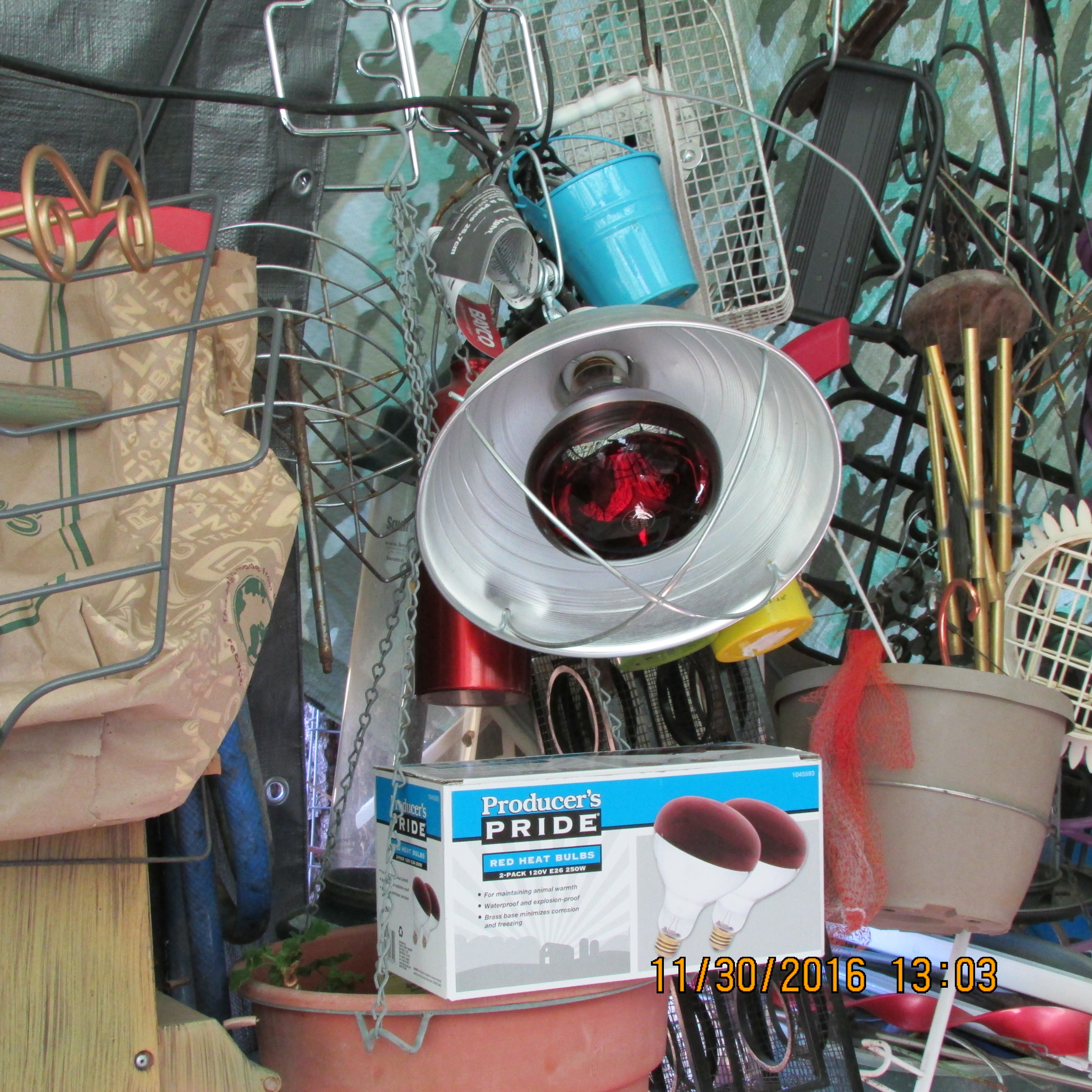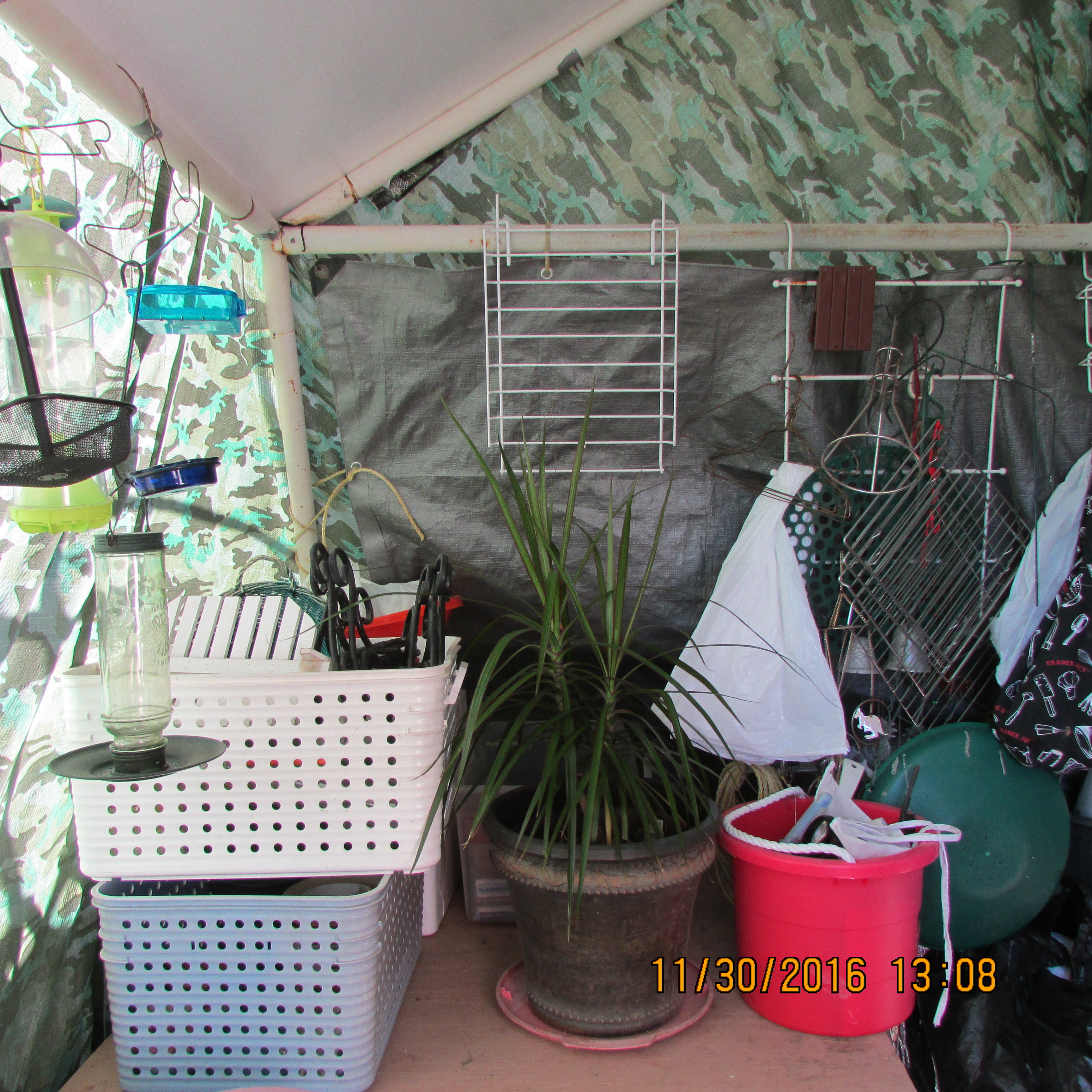 3:30 PM; sixty-five degrees outdoors. An exhausted old lady taking another break and adding two more pictures. ~~ Twenty-two planters under cover today!!
