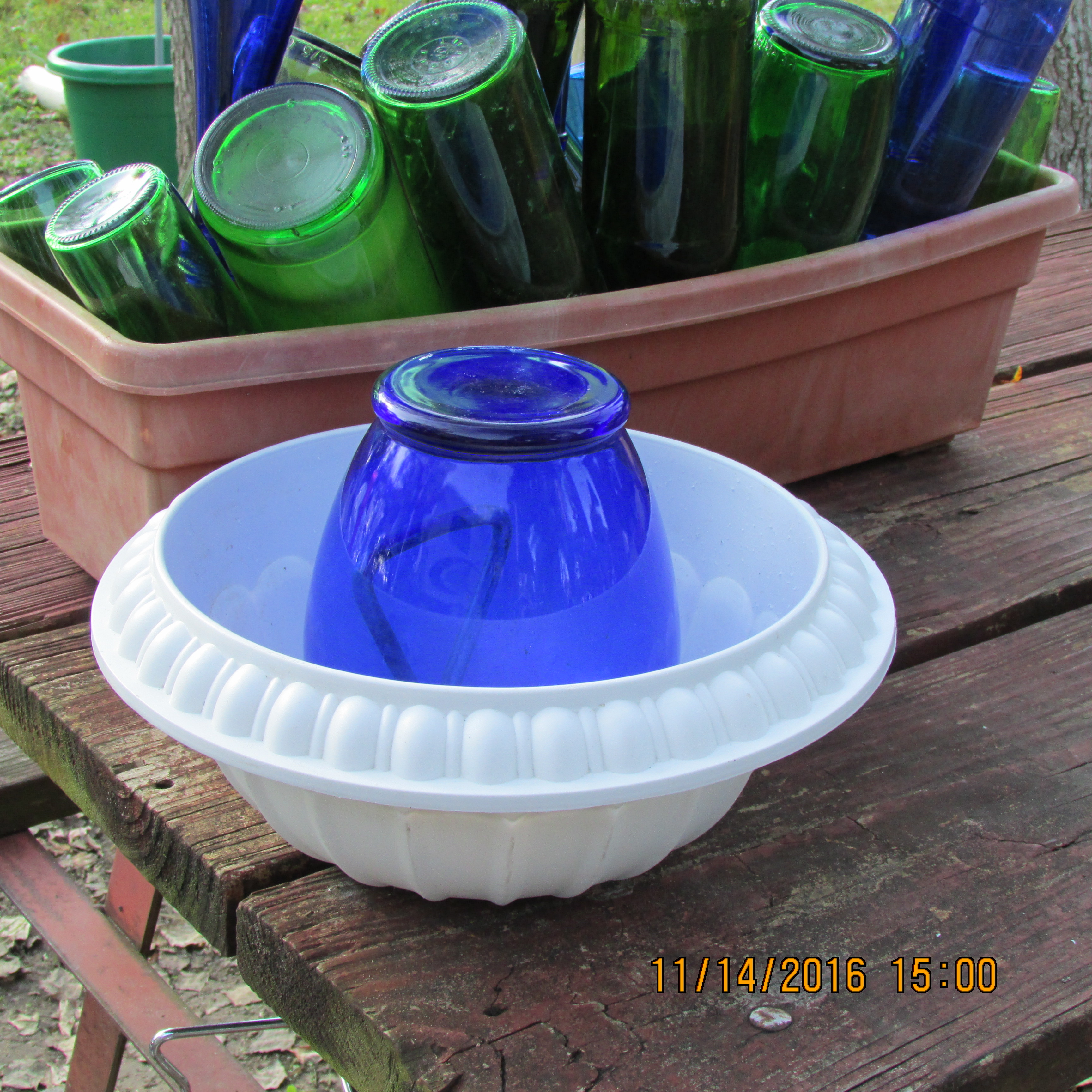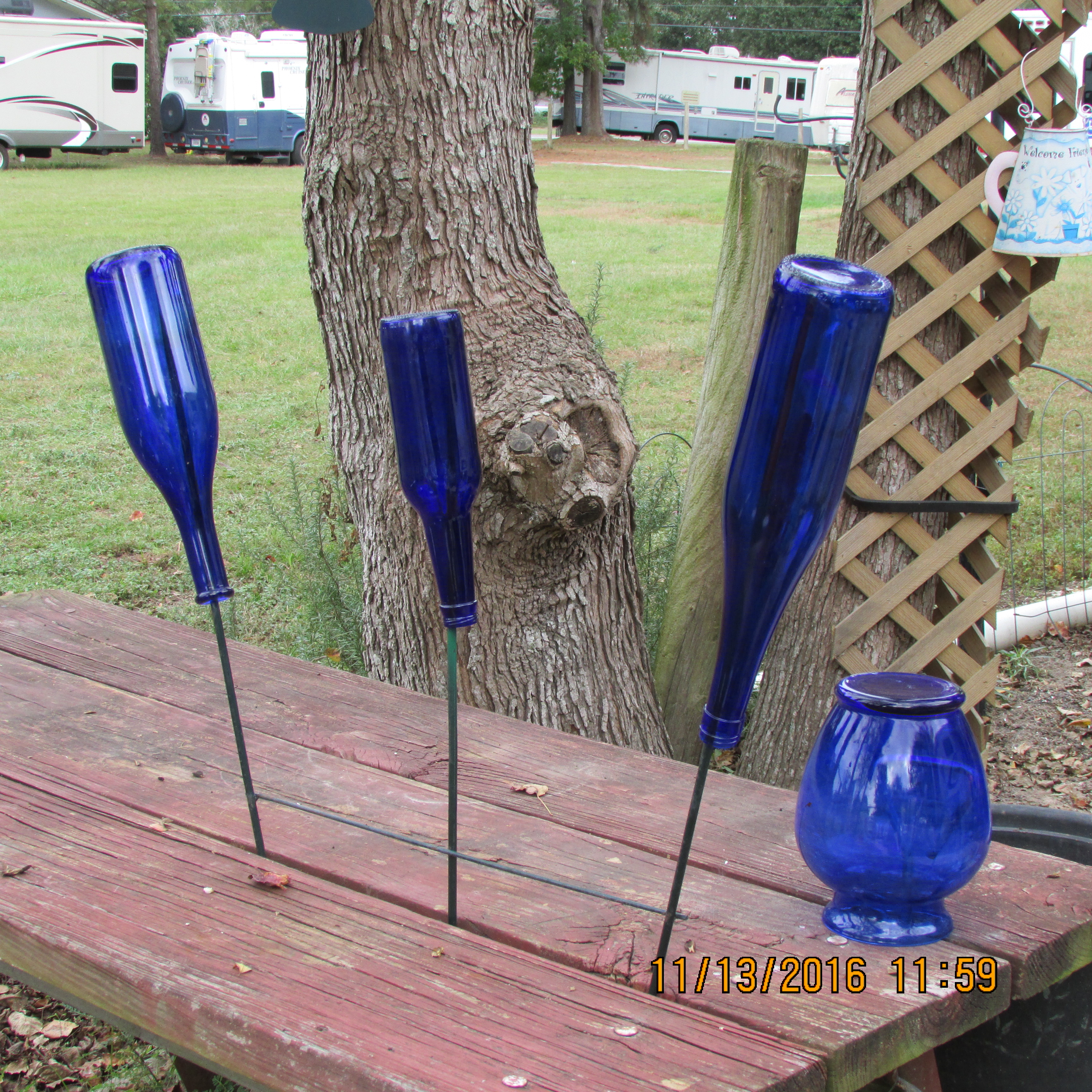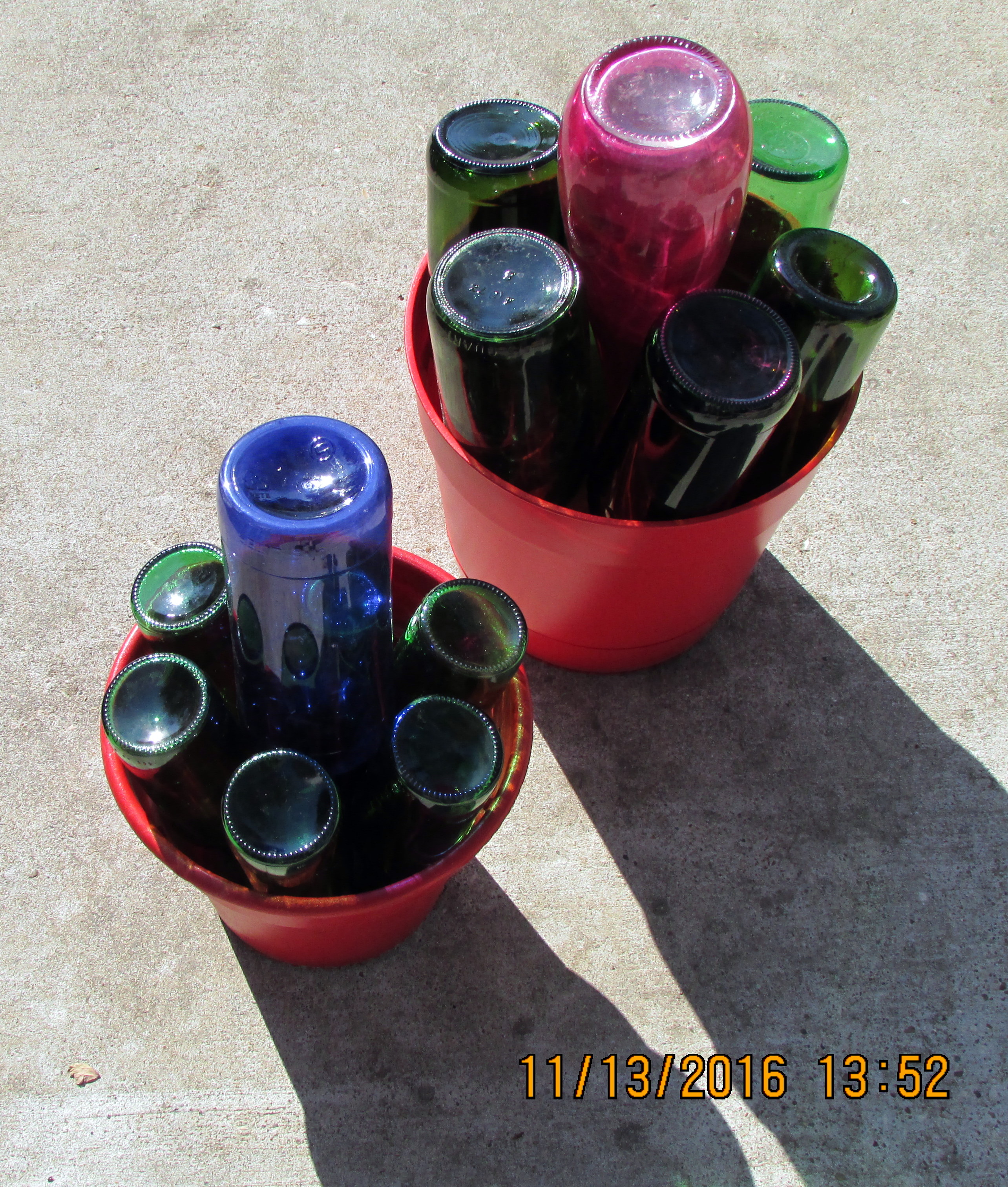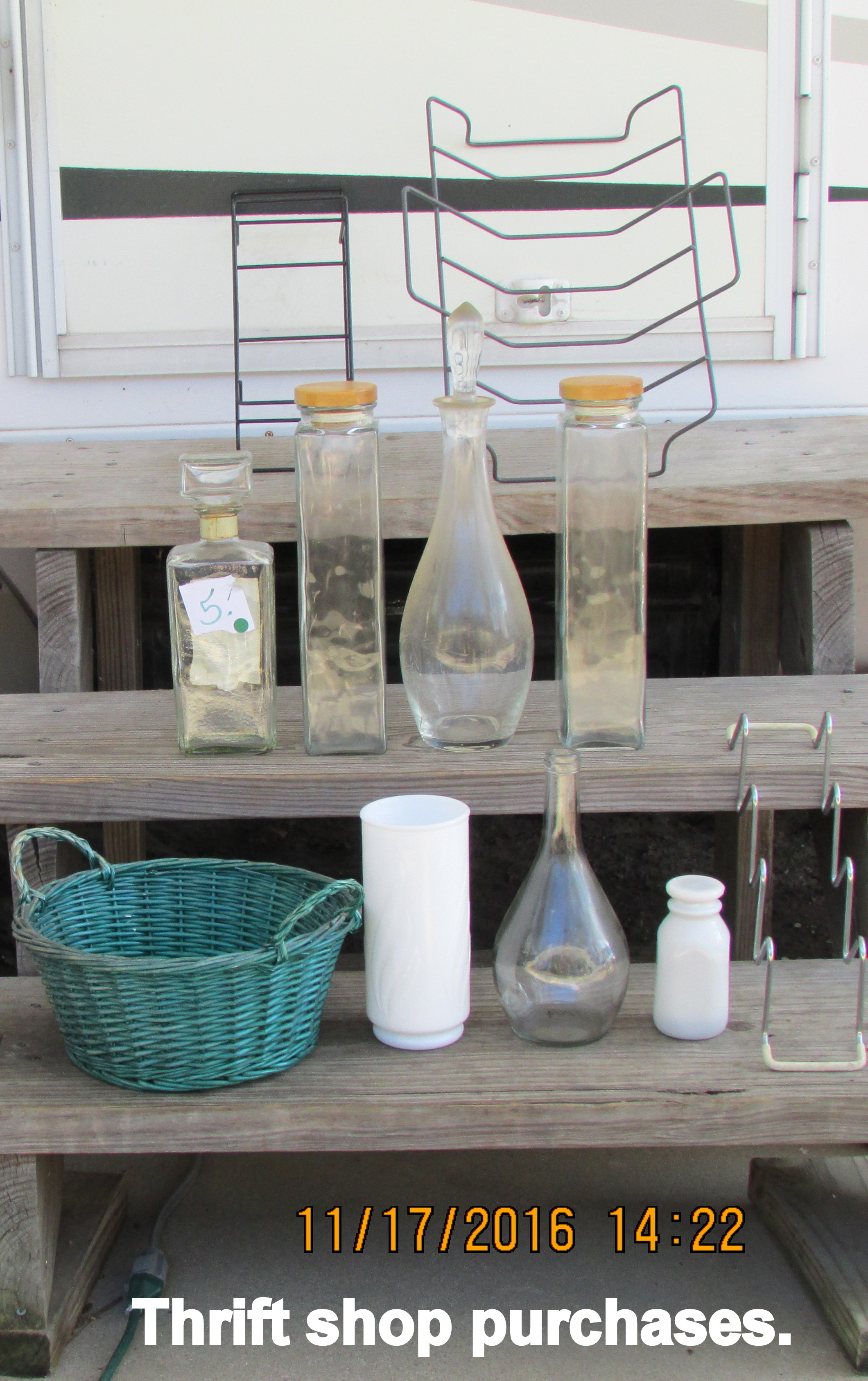 By necessity, I was in Livingston to have the KIA inspected before paying my annual vehicle renewal fee. Waiting, waiting, waiting…. Today’s only redeeming factor: A brief stop at the Habitat for Humanity thrift shop. Sadly, I never find colored bottles in thrift shops and very few colored vases. ~~ The new (used) bottles are sparking clean and the labels removed.