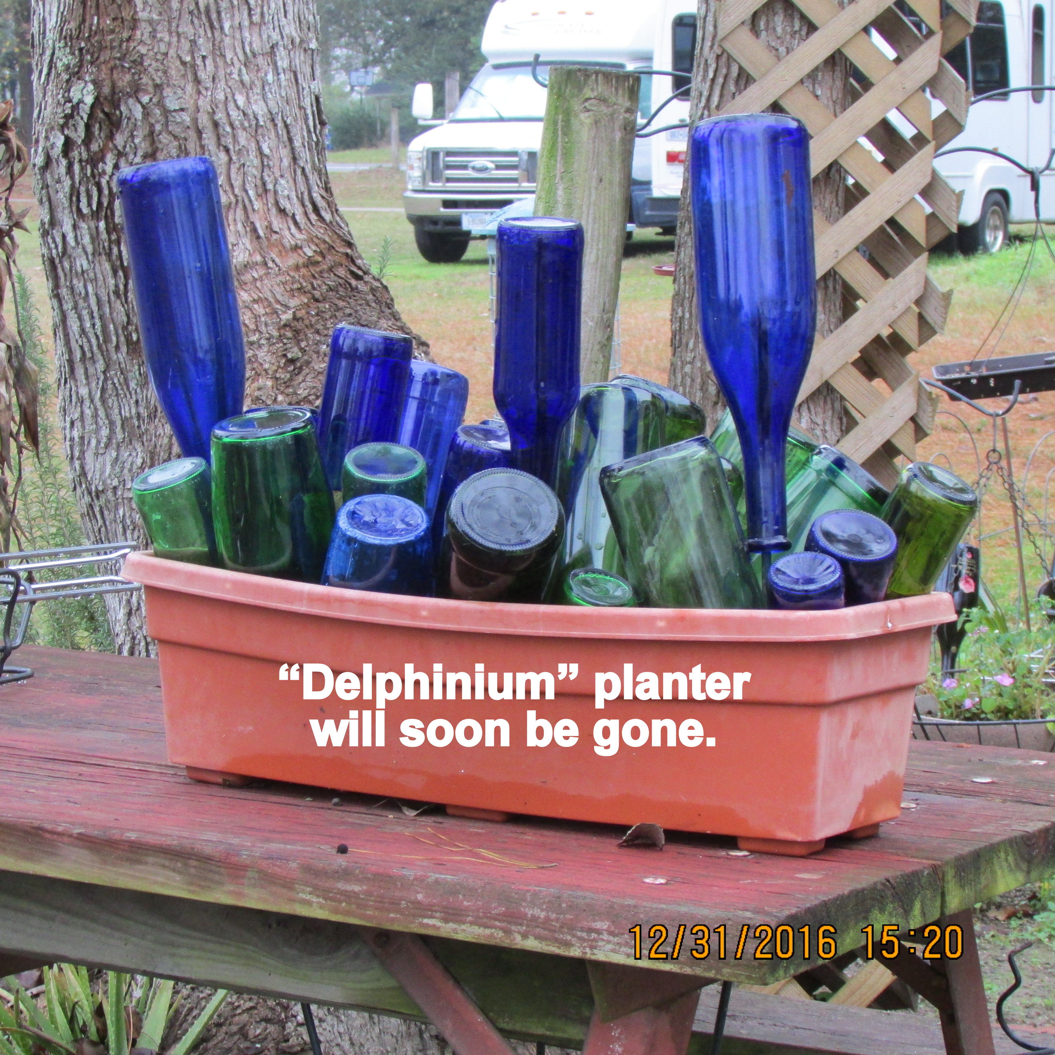 Postscript, 2:00 PM: In conversation, in the CARE dining room, after the noon meal, the “malcontent“ revealed themselves. I’m so grieved that my “extended family” feel so strongly about the bottles. They say “No more“!! Within a week, I’ll received the package with Awesome Blossom and I’d planned to prepare a cement base for it (in a planter).