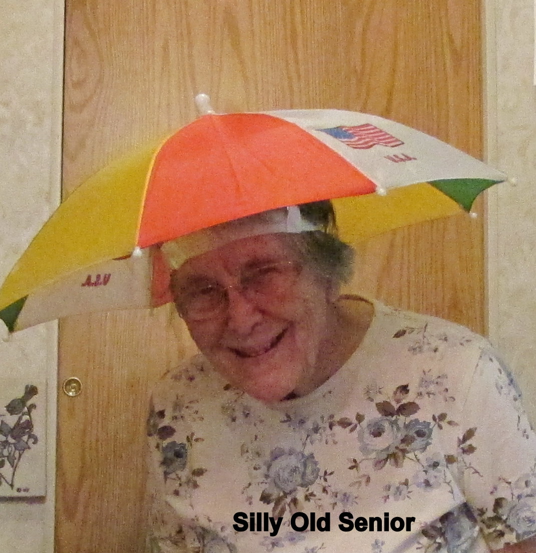 This is our third day of gloom: Dark clouds, misting rain, cold and disagreeable!! Hoping to put a smile on CARE resident’s faces, I wore my silly umbrella hat to lunch. “Yes,” lots of smiles but one individual said “Don’t you know it’s bad luck to have an umbrella up in the house?”. My reply: “It’s a hat.”