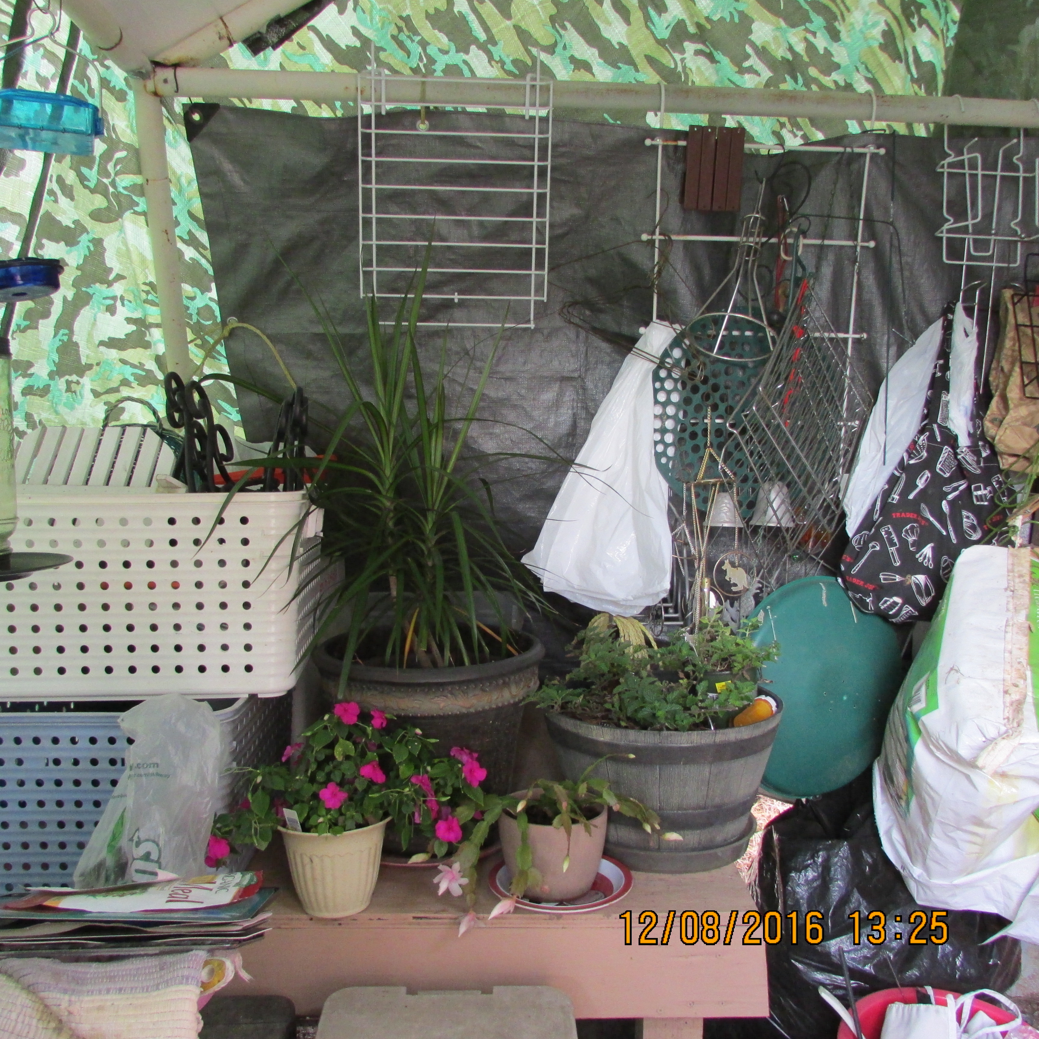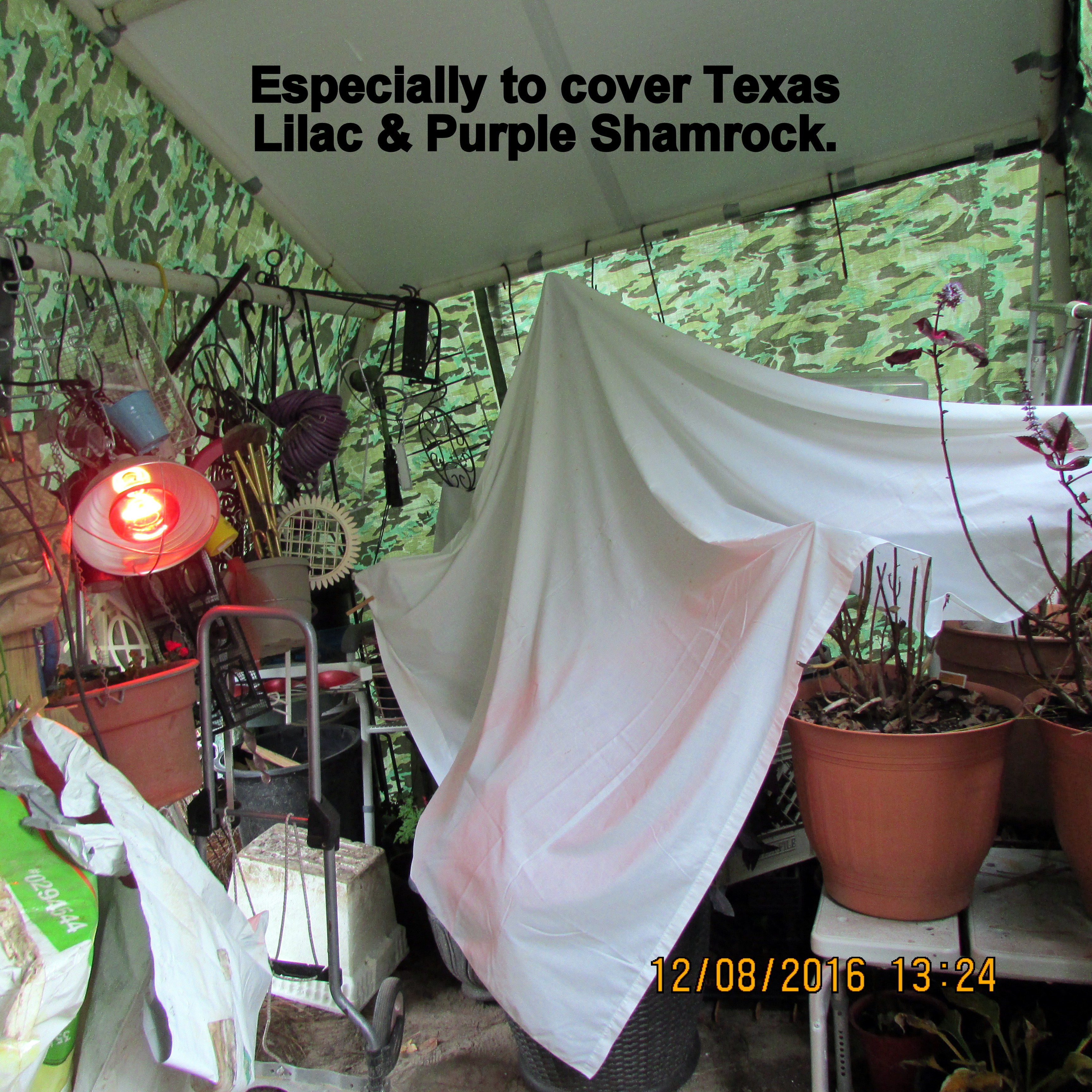 Because the heat lamp bulb does not appear to warm the tarp shelter, I covered some of the plants.