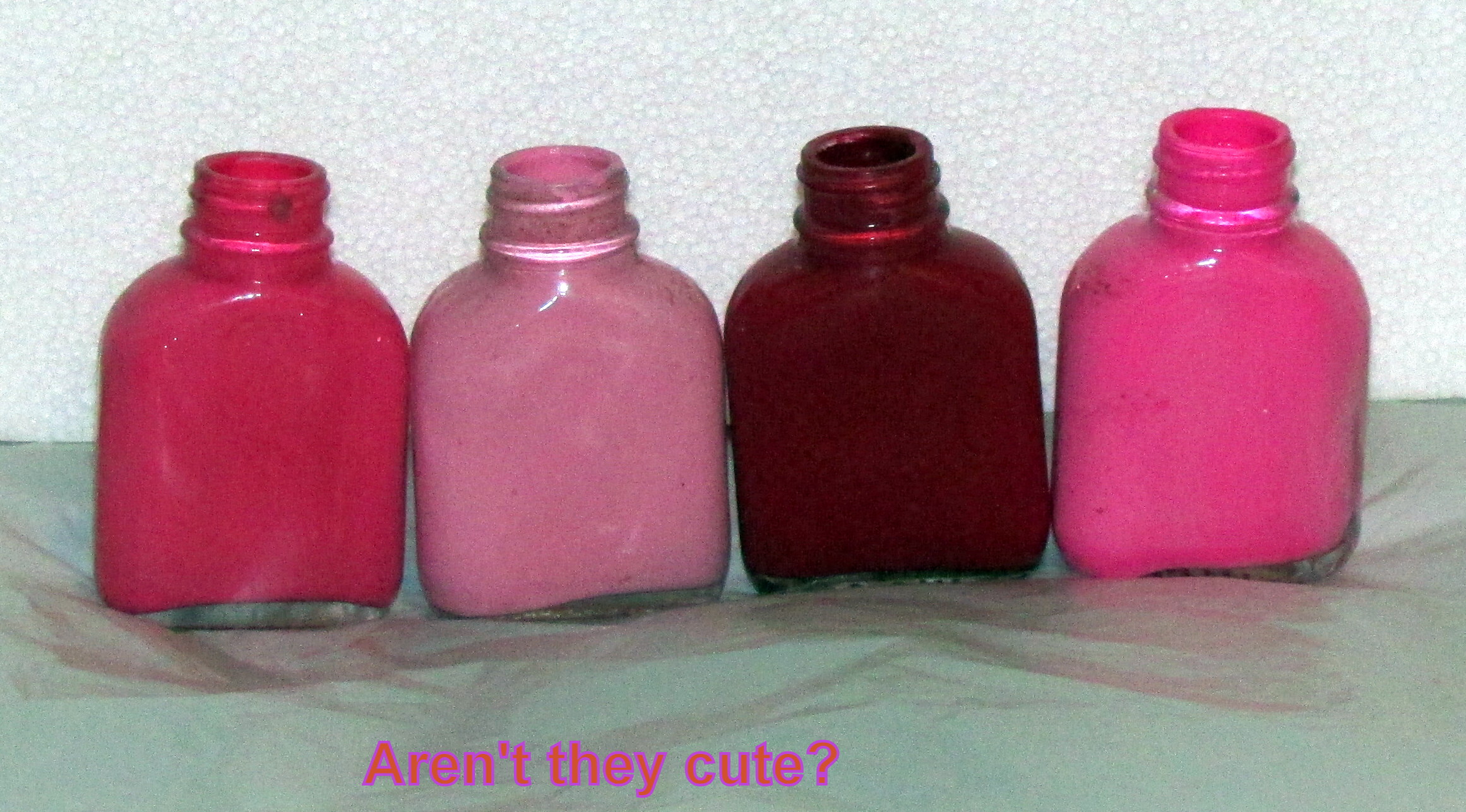 Honestly, I tackled this project as though I knew what I was doing!! Only today, about nine-thirty, I decided to consult the Internet. Well, my instincts must have been finely tuned because it appears I’ve been doing it correctly. Yes, I “roll”–and “shake.” However, I did not “bake.” That never occurred to me because I’ve allowed them to “air dry.” I plan to stay with “air dry” because my oven is storage for cooking utensils I never use. (Time to “downsize”?) ~~ It’s a mystery to me (and frustrating) when some bottles accept the paint and look attractive but some bottles require twice the time and are streaked and uneven. That’s why I searched the Internet for information.