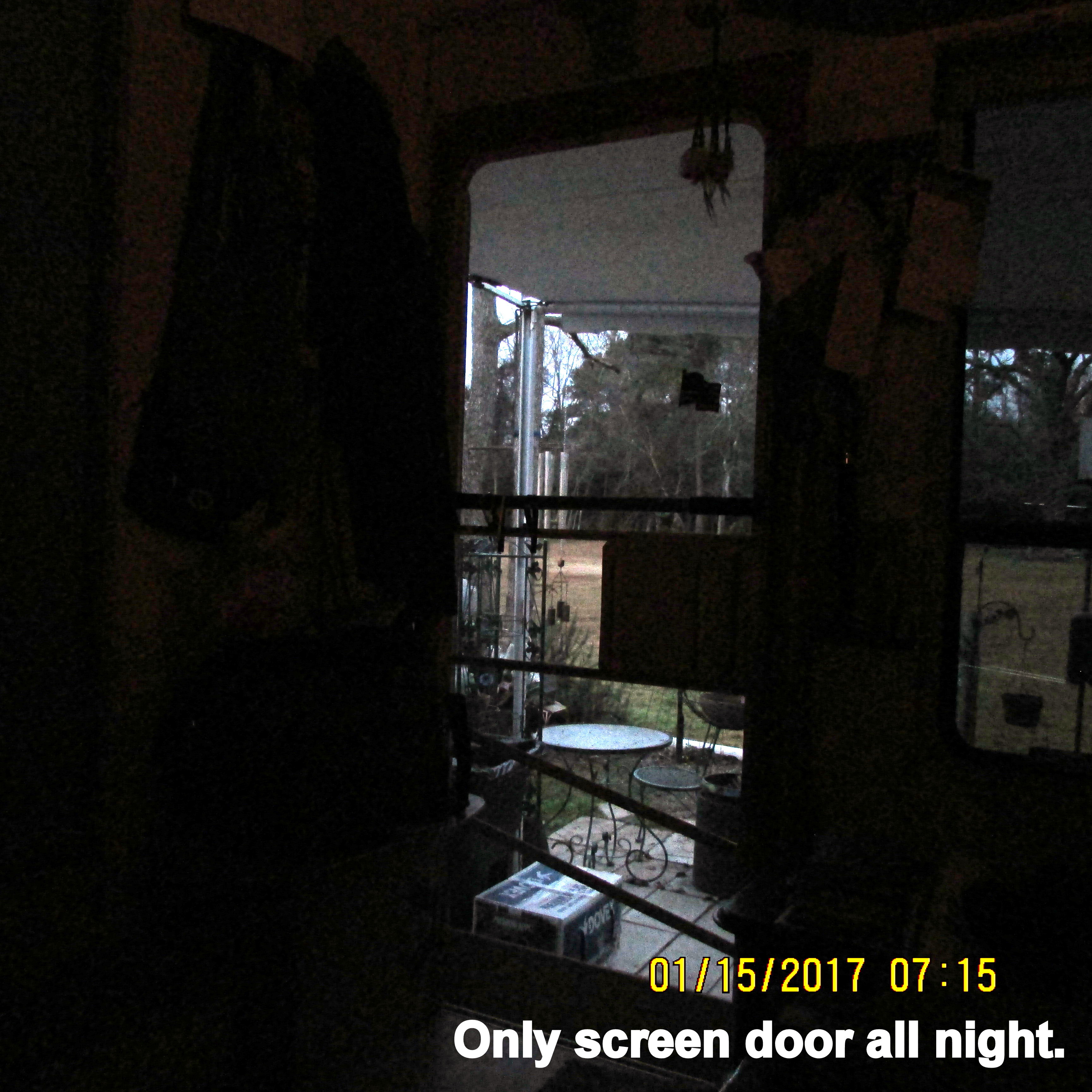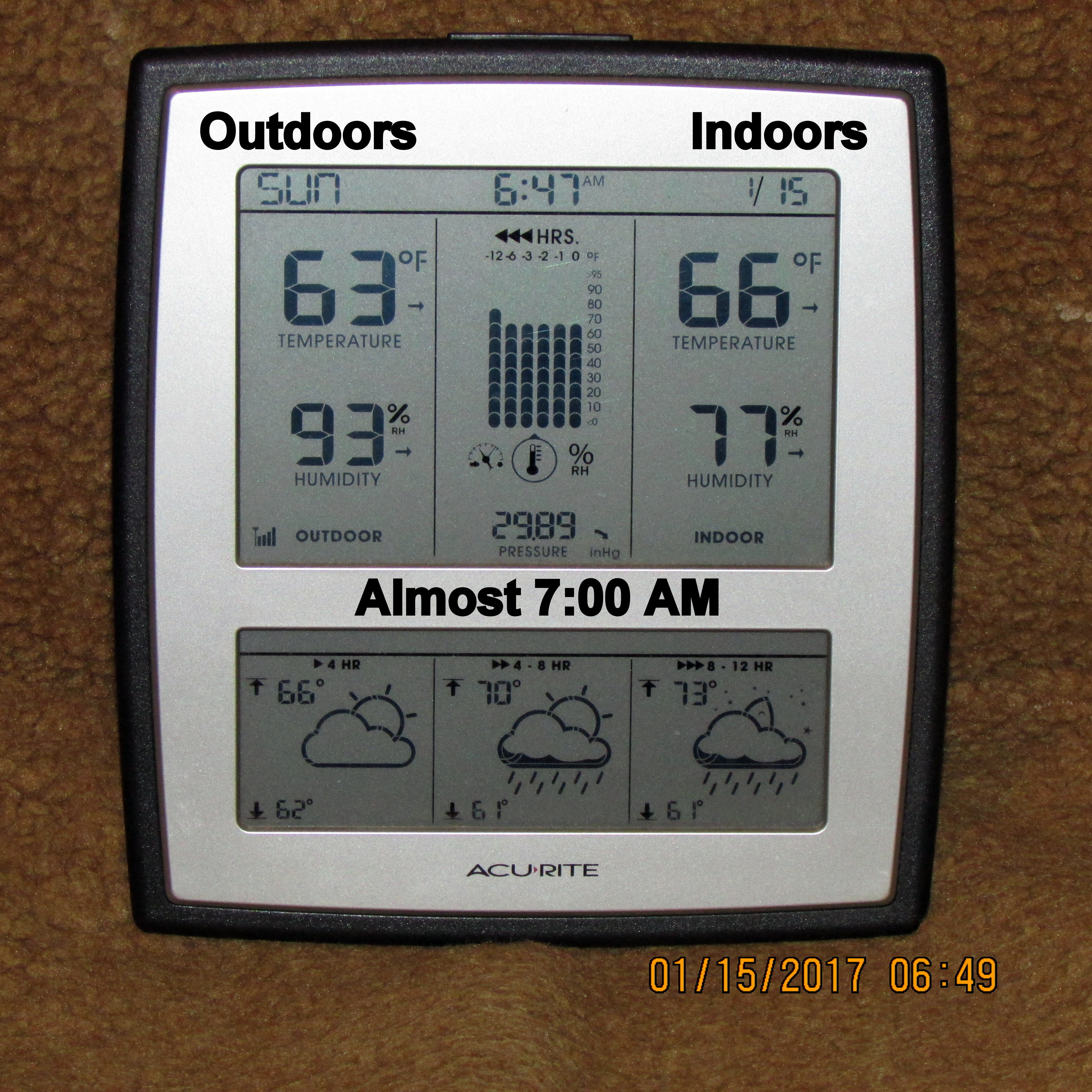 Door open all pleasant night (in January). I slept comfortably and, surprisingly, didn’t need to get up during the night. That was “comforting” because my body aches from head to toe!! My unverified diagnosis: “Whip lash” because my neck is really sore!! I only mention this so I can repeat my gratitude, praise, thankfulness, etc., etc., because the accident didn’t put me in the hospital.