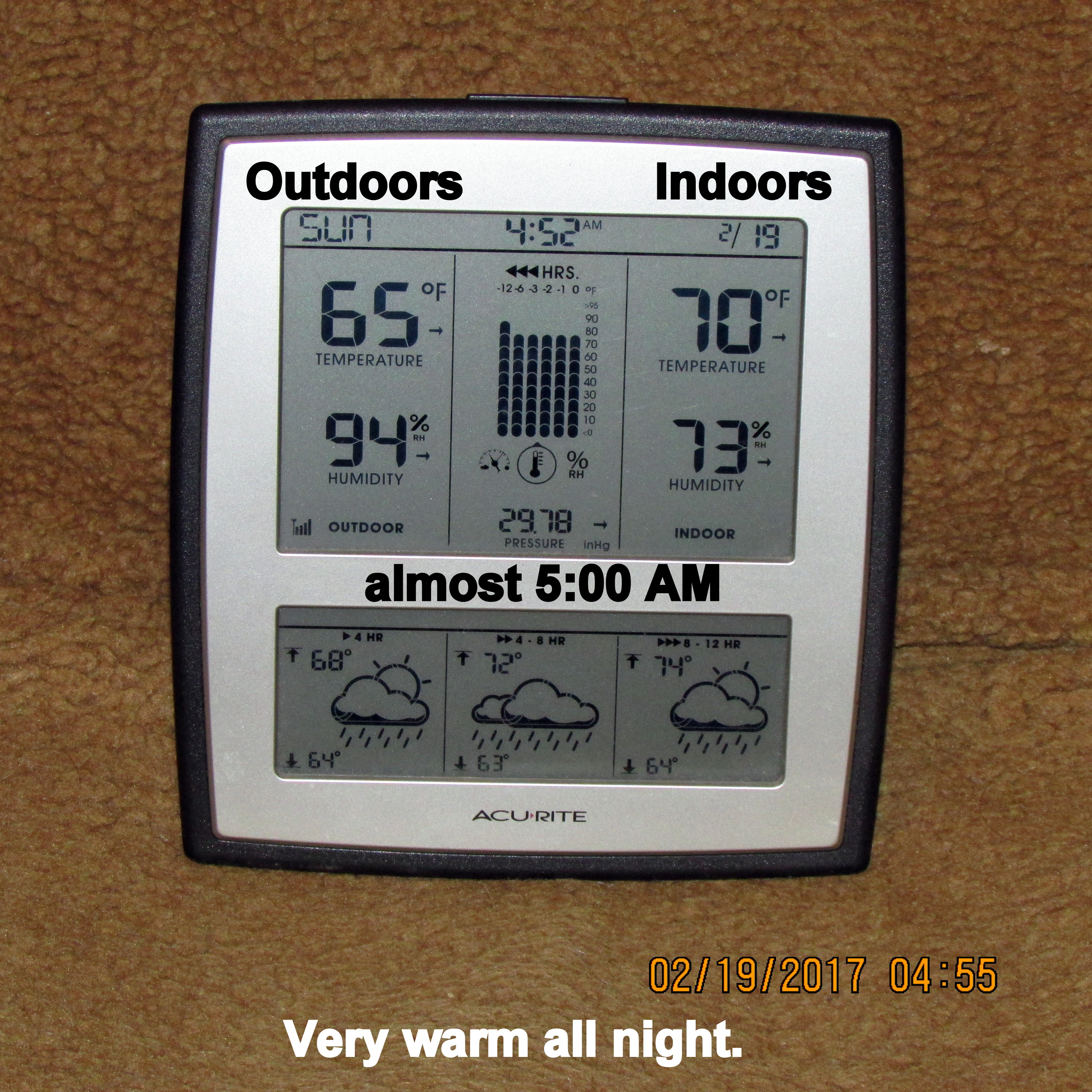 My door was open all night, and a sheet was the only covering necessary during the night. This was reminiscent of a summer night.
