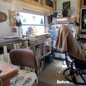 When I say “wiggle room only,” see how little space for my secretary chair, and comfortable glider chair.