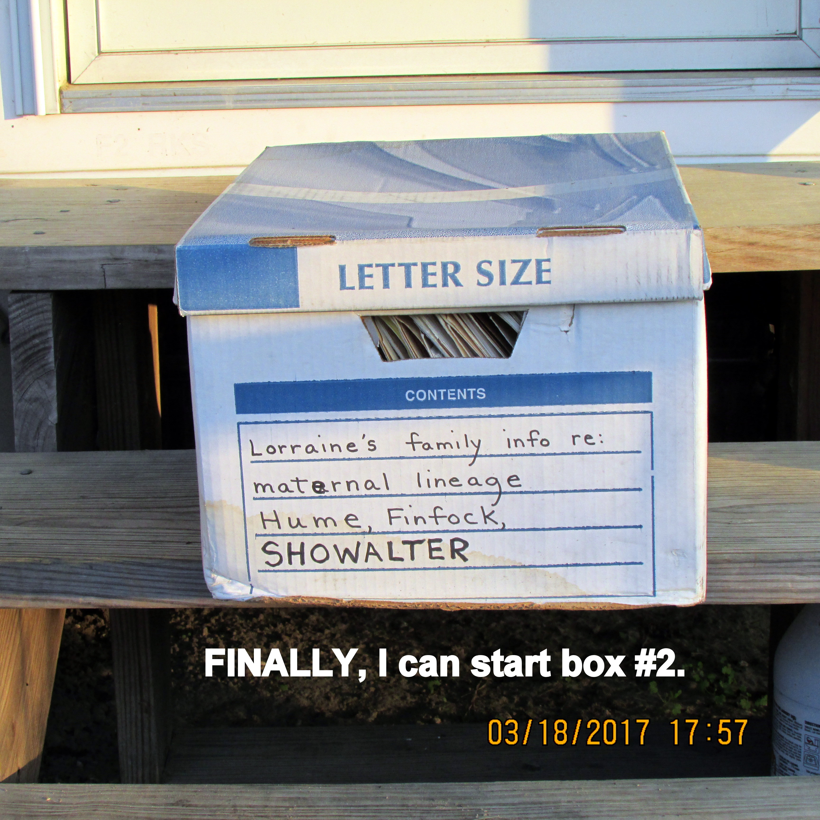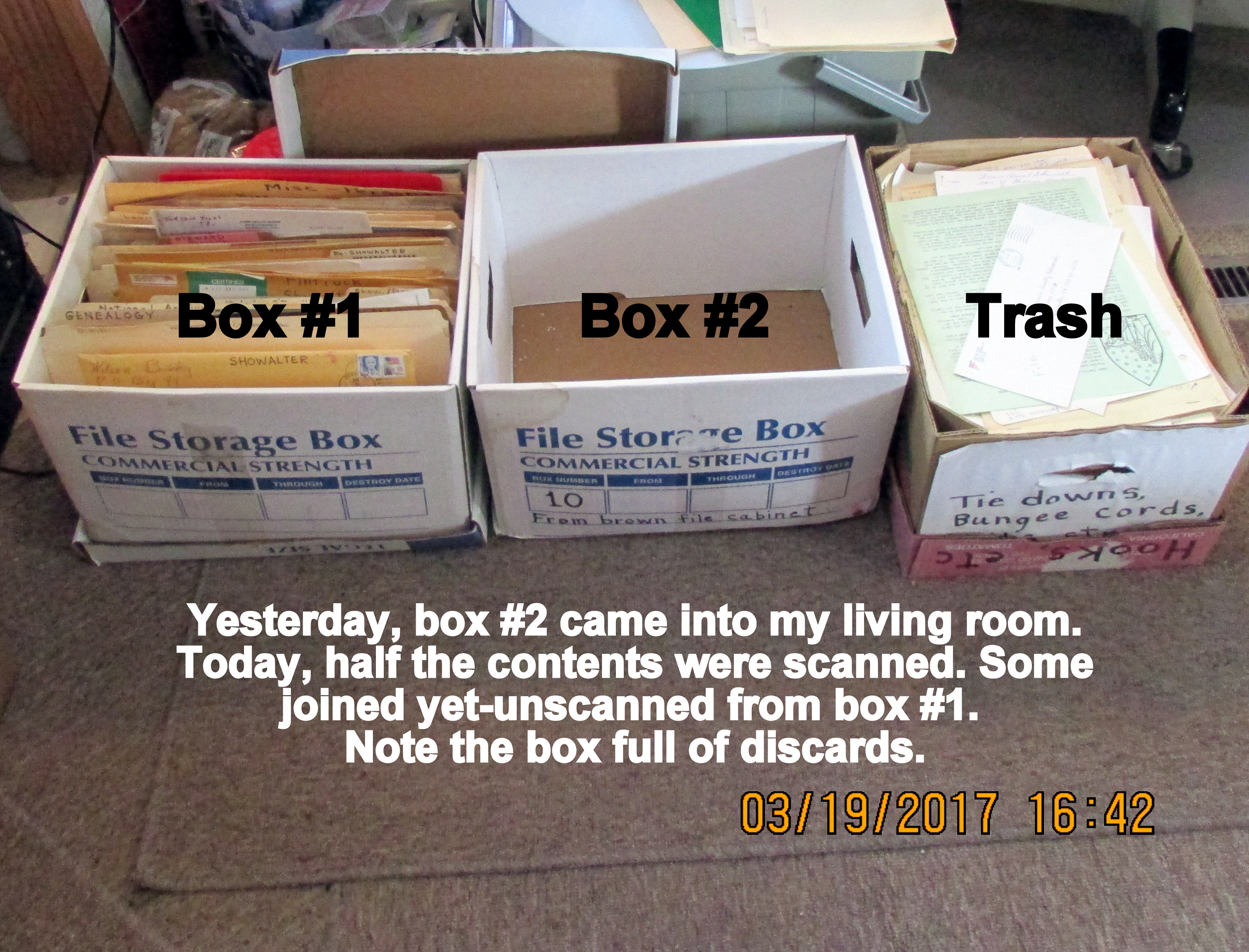 “Yes,” the storage building has been so crowded, and cluttered, I could barely get the door open!! Things are rearranged and piled higher. Contents of those boxes may not be scanned for months?! ~~ Frankly, today I needed all the physical exercise, and fresh air, after recent intensive mental gymnastics with the computer and scanner.