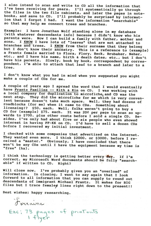 Yes, “Yours Truly” returned to the scanning project. However, I did some gardening earlier in the day and will post pictures and comments when I take another “break” from the scanning. I found the letter (from twenty-and-one-half years ago) informative.