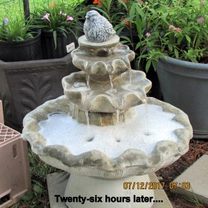 I washed the fountain a dozen times yesterday but this is what greeted me this morning. I think the fountain—and the weeds—are in collusion: “Make her work.” (The weeds are ruthless.) A year ago, I devoted all my time to my “yarden.” This year, the scanning project tops my priority list.