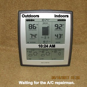 Oh no!! While typing this–7:45 AM– the problem re-occurred!! It isn’t a problem with my one-year-new A/C; it’s the beastly hot weather.