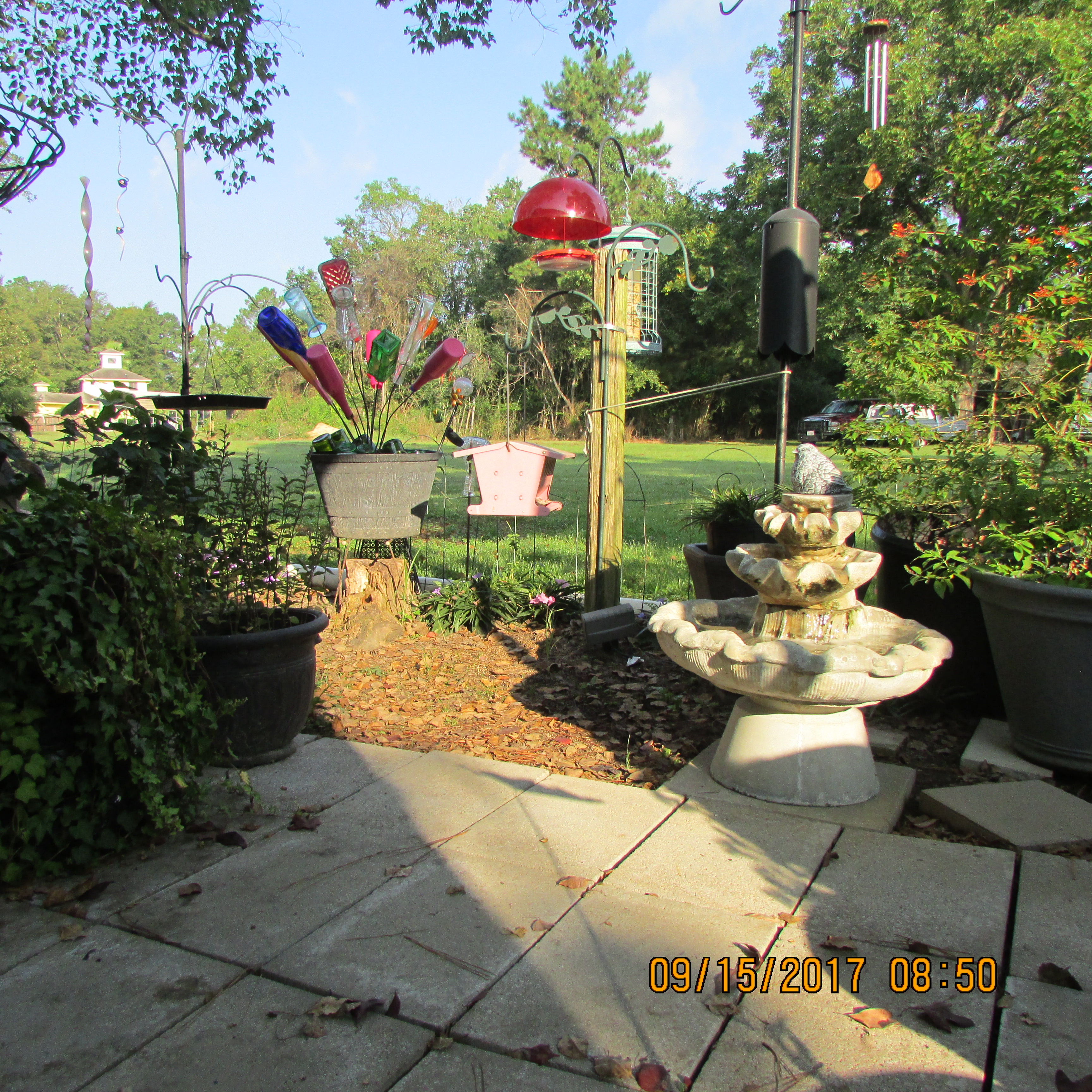 No Today today; no Today yesterday; no Today all week!! It is (was) my habit to start my day with the Today show. First thing each morning, turn on the TV. This week, quiet time on my patio with the birds and squirrels. Imagine me sitting in my rocking lawn chair with a cup of coffee (and Zing oatmeal chocolate-chip protein nutrition bar). I thought the “path of sunshine” was worth photographing (because I’m working on a “path to recovery” from overwhelming hurricane disaster). I sit on my patio and thank God for my many blessings!!