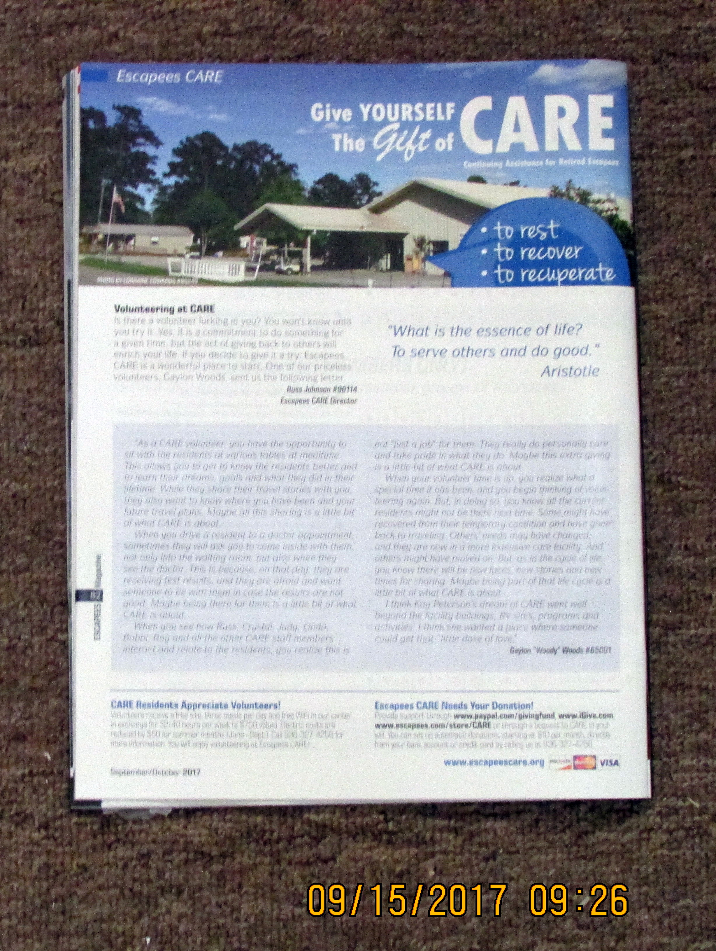 You did a great job with the pictures and some of them also appear on the Escapees Care Inc Facebook page. Thank you so much. I love the steps you are taking for your recovery! Blessings on you!
