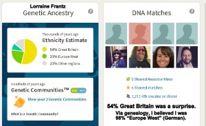 Two separate tests, two different organizations; I’ve wanted to “make comparisons.” So far, very few “cousin” connections. (Because they aren’t interested in family history?) See Lorraine’s DNA with MyHeritage.