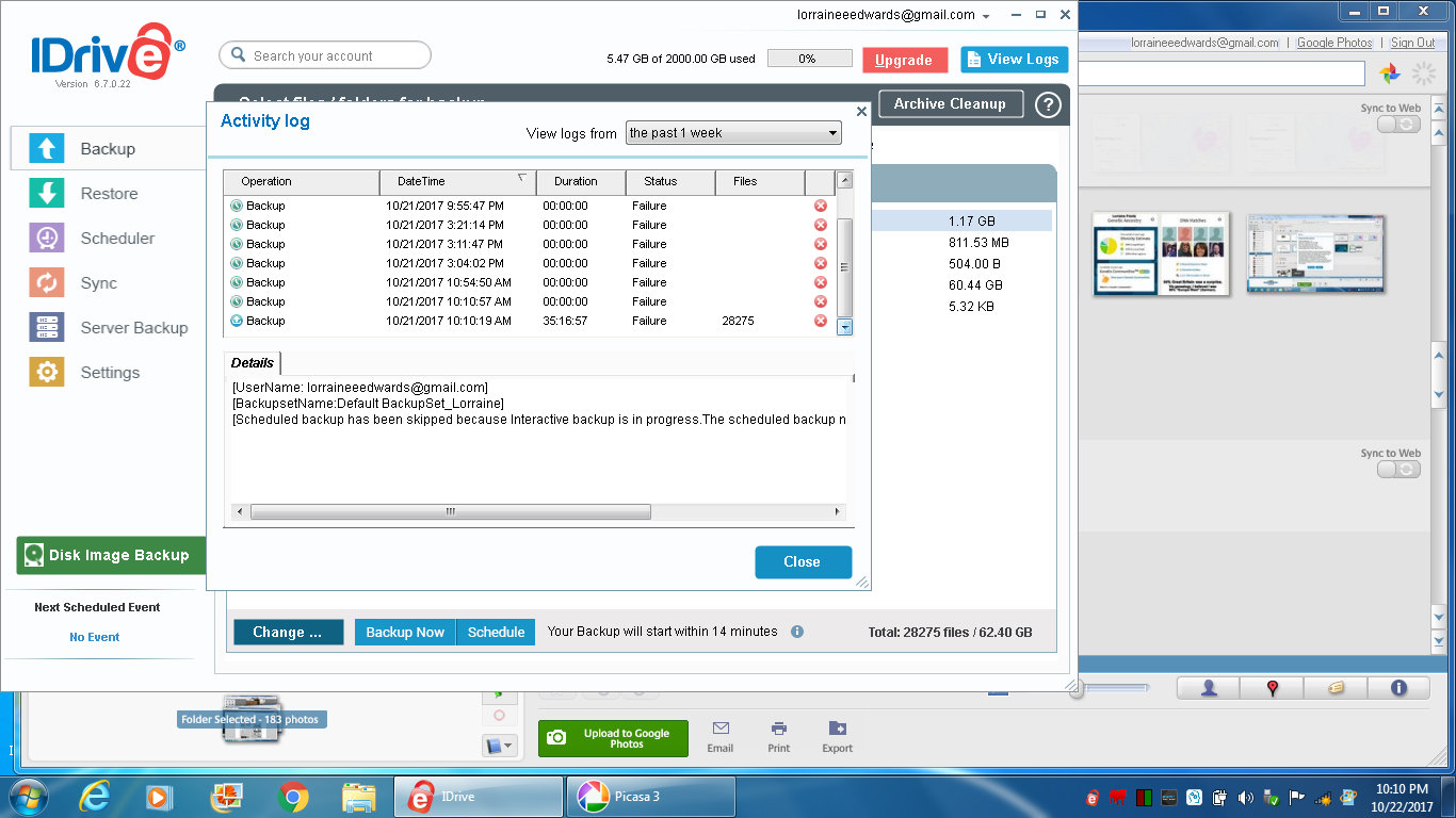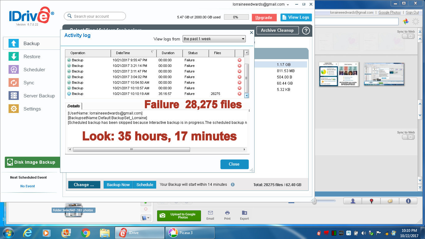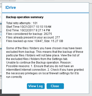 IDrive “failed backup” !!
