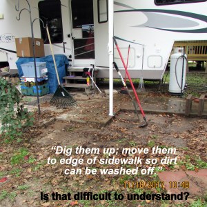 Energizer bunny, NOT!! I’m utterly exhausted!! Pictures taken AFTER my labors on Thursday afternoon and evening, and Friday morning (this morning). Furthermore, I was in contact with something that has me frantically itching and scratching!!