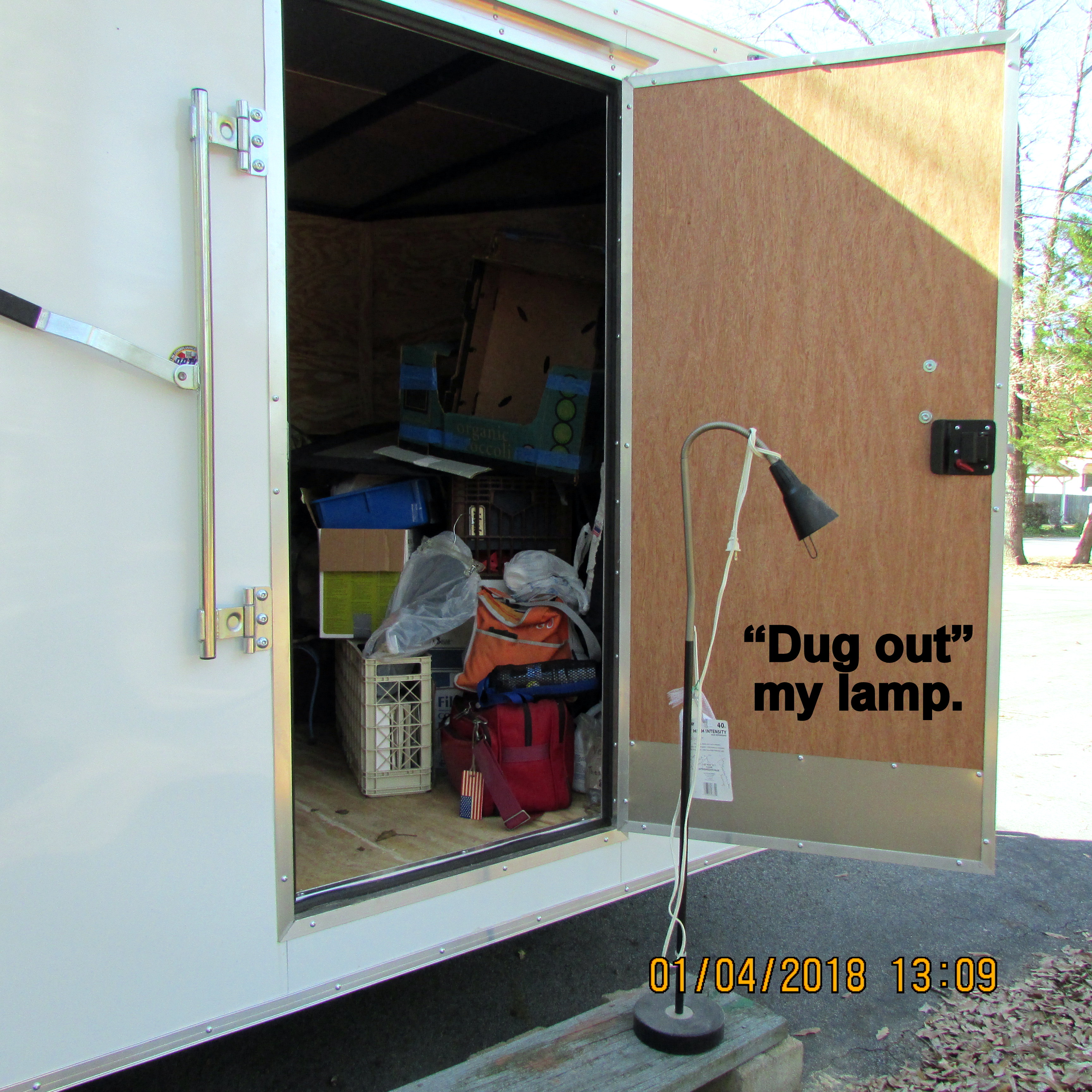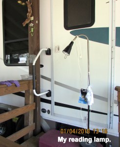 Lorraine dug around in the cargo trailer to locate the spade for the Hughes Satellite Internet installer. During the process, was able to extricate the reading lamp. When “installer” was finished with the spade, I tried to dig a hole for the base of the mailbox. The ground was too hard; I’m not proud of the appearance. When it is warmer, I’ll stabilize….