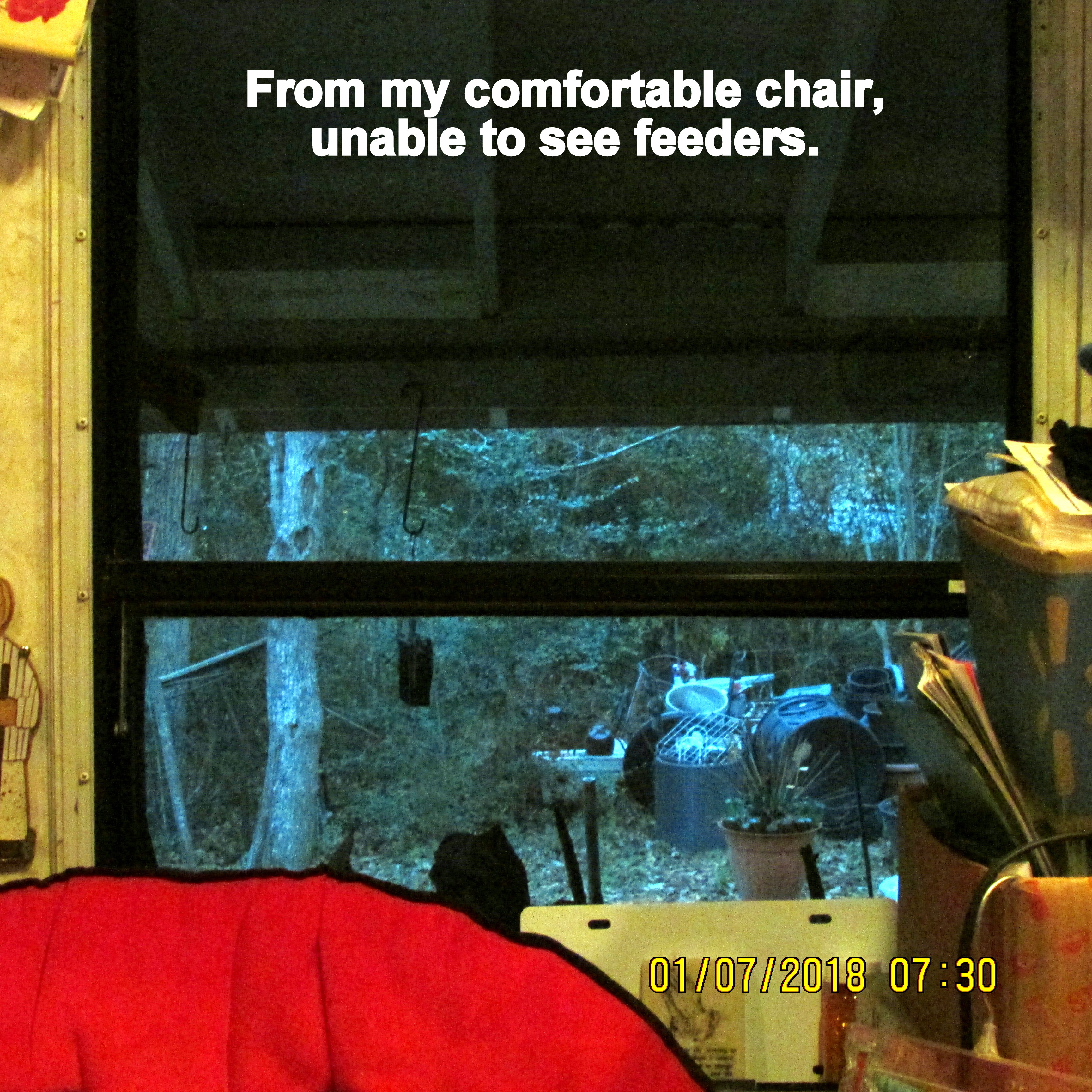 At my previous location, I could watch the birds while seated in my comfortable chair. To duplicate… I’ll need to set up a Shepherd’s Hook in the open area?!