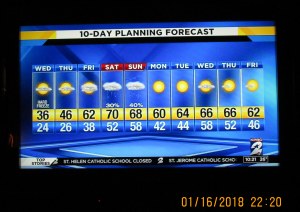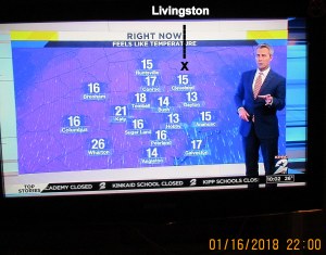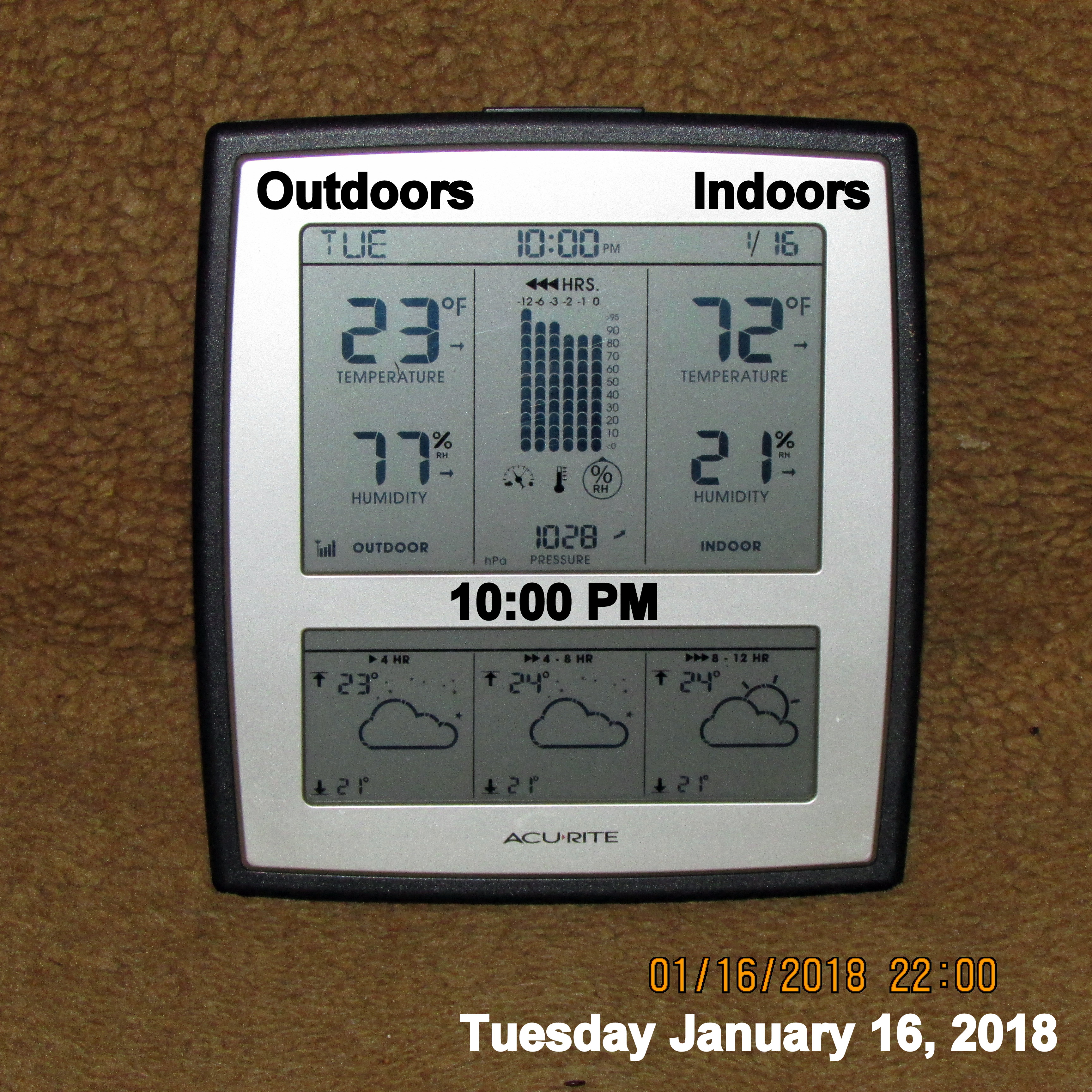 Updates from my indoor/outdoor thermometer and TV meteorologist.