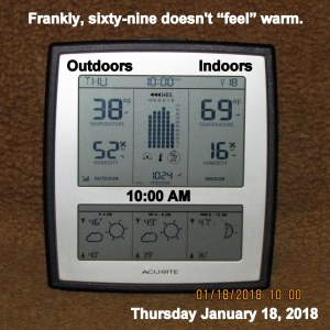 “Seventy degrees by the weekend” was the parting comment by Houston TV meteorologist at 6:57 AM. Millions of people will be so grateful when the arctic temperatures are history. My propane tank is empty–so my trailer home lacks the comfortable warmth I enjoyed for a few days. As soon as I publish this message, I’ll wrap up in my Slanket and watch the NBC Today show. (Wearing a coat right now!!)