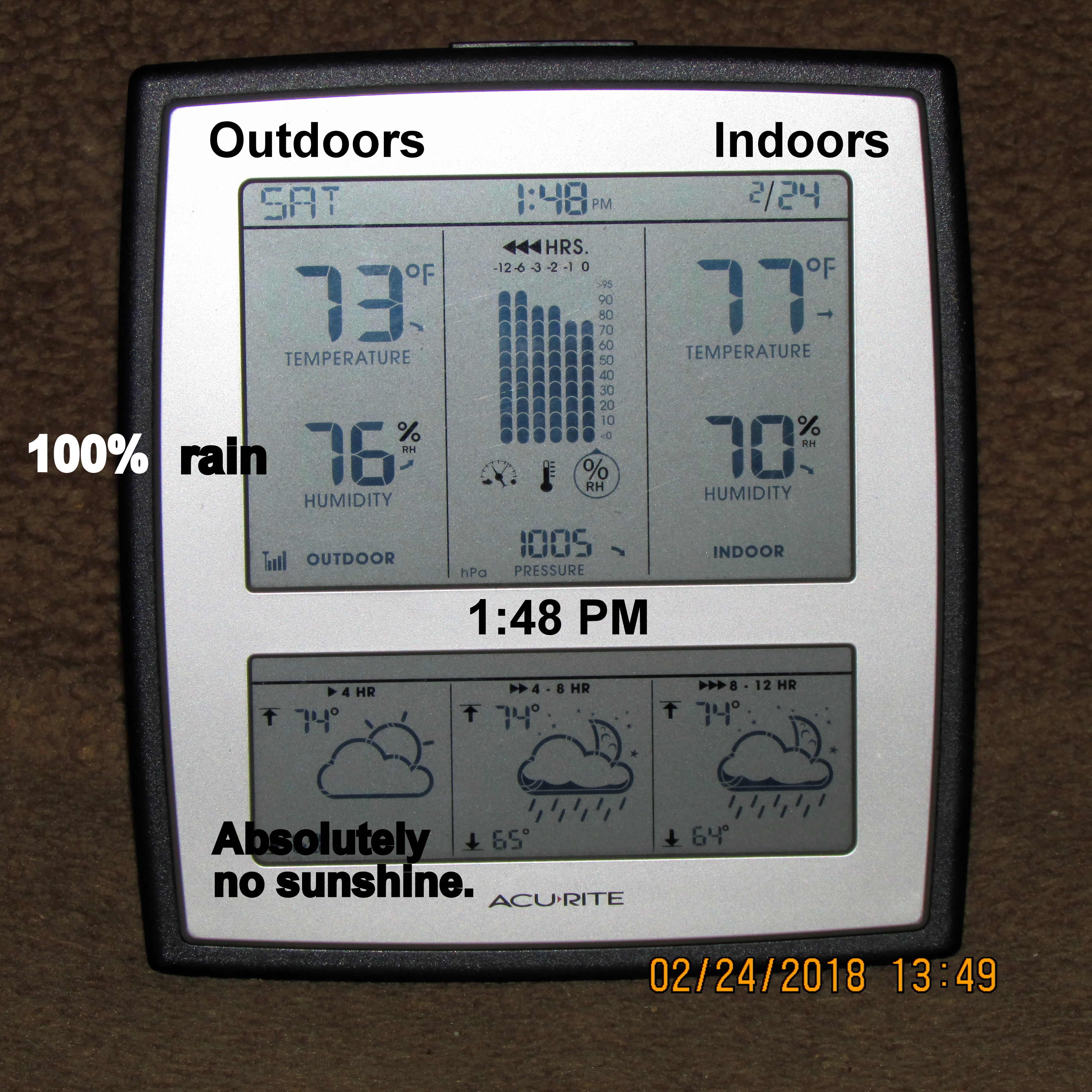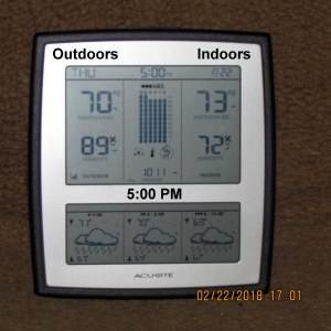 The weather interfered with DISH satellite television reception, HUGHES satellite Internet and GREAT CALL/Jitterbug cell phone reception. It’s alarming when I don’t have Jitterbug service with 5-Star (for emergencies). I’m reasonably healthy (?) but take comfort knowing help is as close as the push of a button.