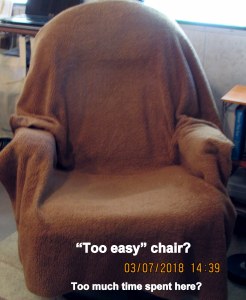 “Too much time” spent in the easy chair?! I’m feeling guilty for sitting and not “doing.” I sit (briefly) at the computer and look out the window at work needed in the front yard. I can see “yard sale” items that need to be priced–and organized. All around me–in my trailer home–things demanding attention. I’m overwhelmed!! The move from the CARE Center has taken a toll on me emotionally and physically. Friends and neighbors ask me how I’m doing. I say “super-duper wonderful” because nobody wants to hear a litany about confusion, depression and fatigue.
