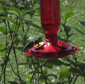 Left: Hung a second Hummingbird feeder–on opposite side of my trailer home.