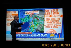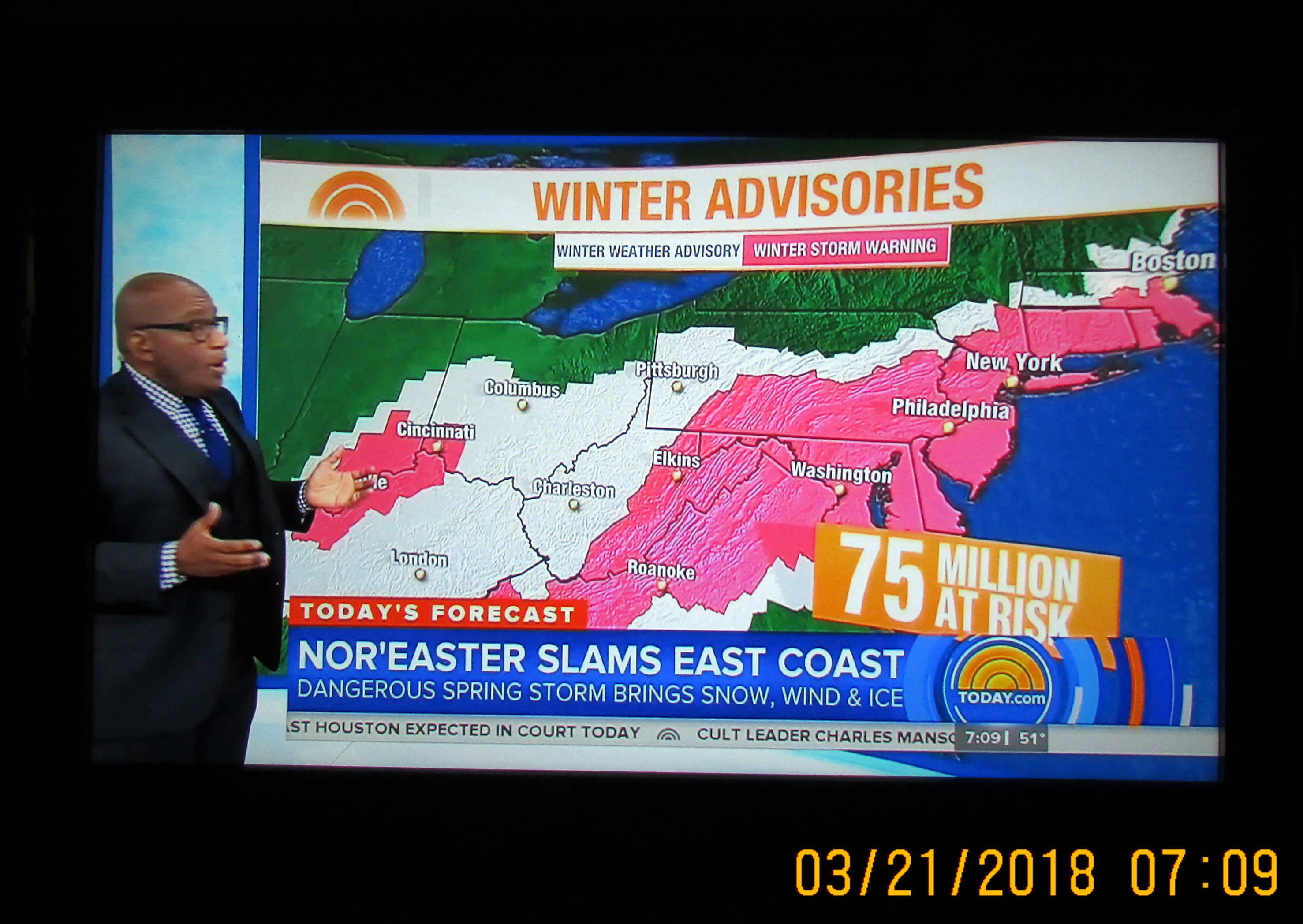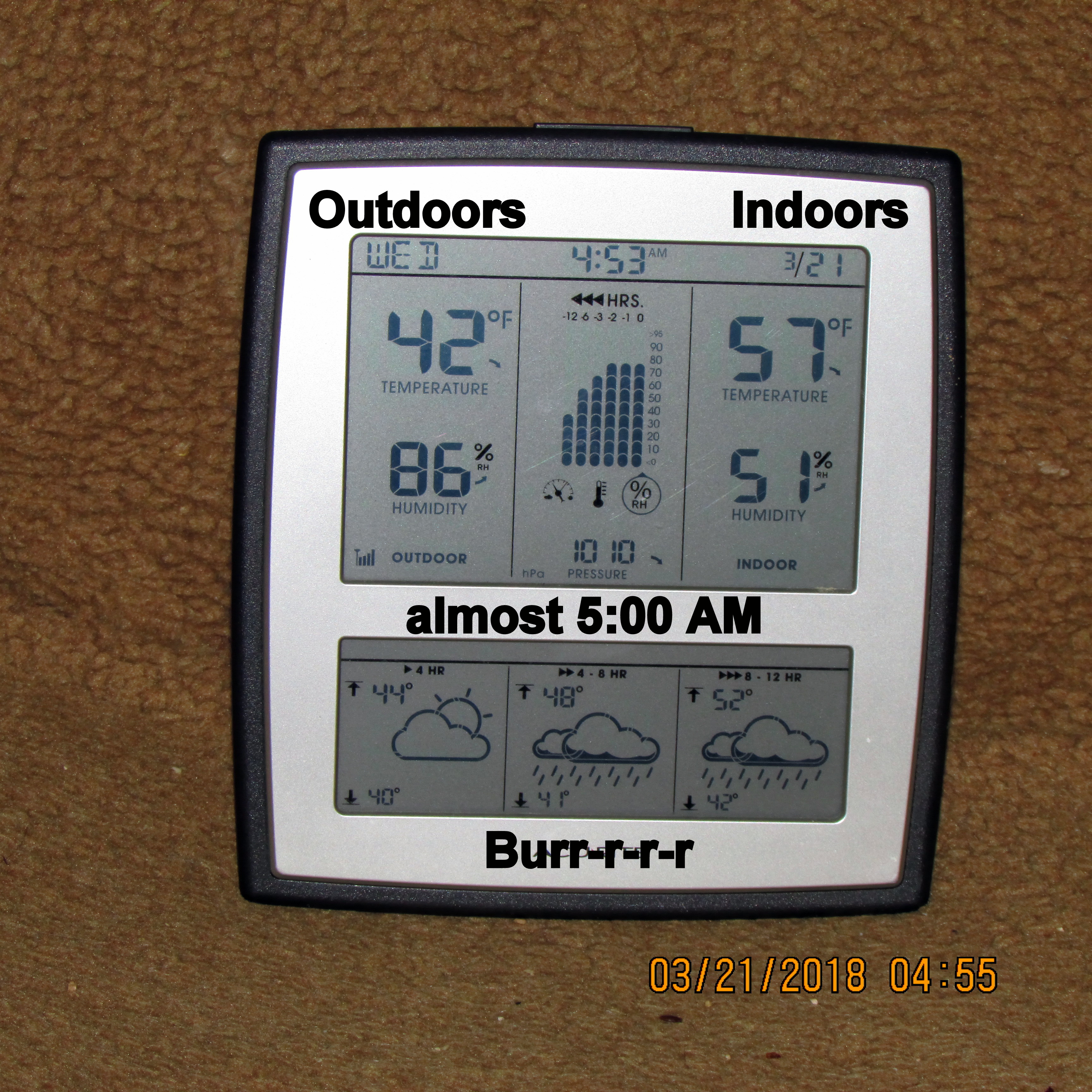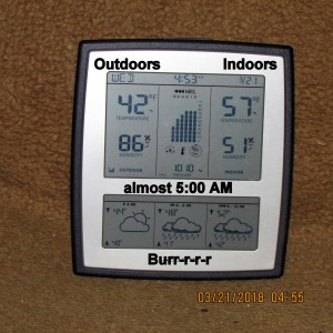 Lazy Lorraine?! She spent the entire day indoors–in nightgown and warm robe–“weather watching,” dish washing, cooking, blogging….