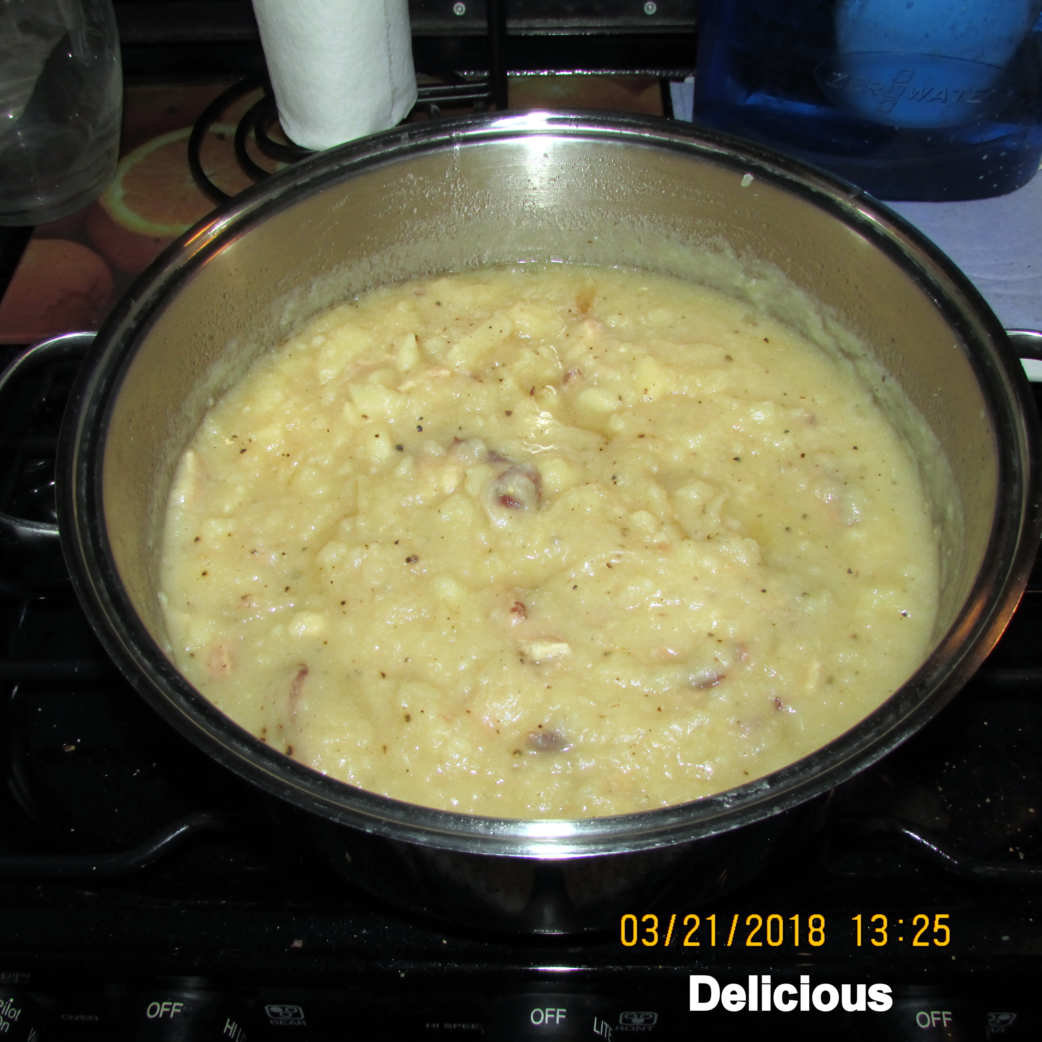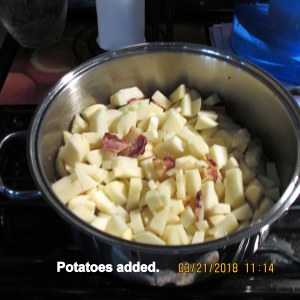The “heat strip” (that works in conjunction with the air-conditioner) was NOT warming my trailer home!! “Cooking”–on kitchen stove–was my perceived solution. What could be better than potato soup??