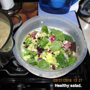 It’s a temptation to devour the soup today (and tomorrow). However, on-the-practical-side, next week (during the yard sale), a quick tasty meal will be especially valuable. Trust me: That potato soup is scrumptious!!