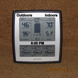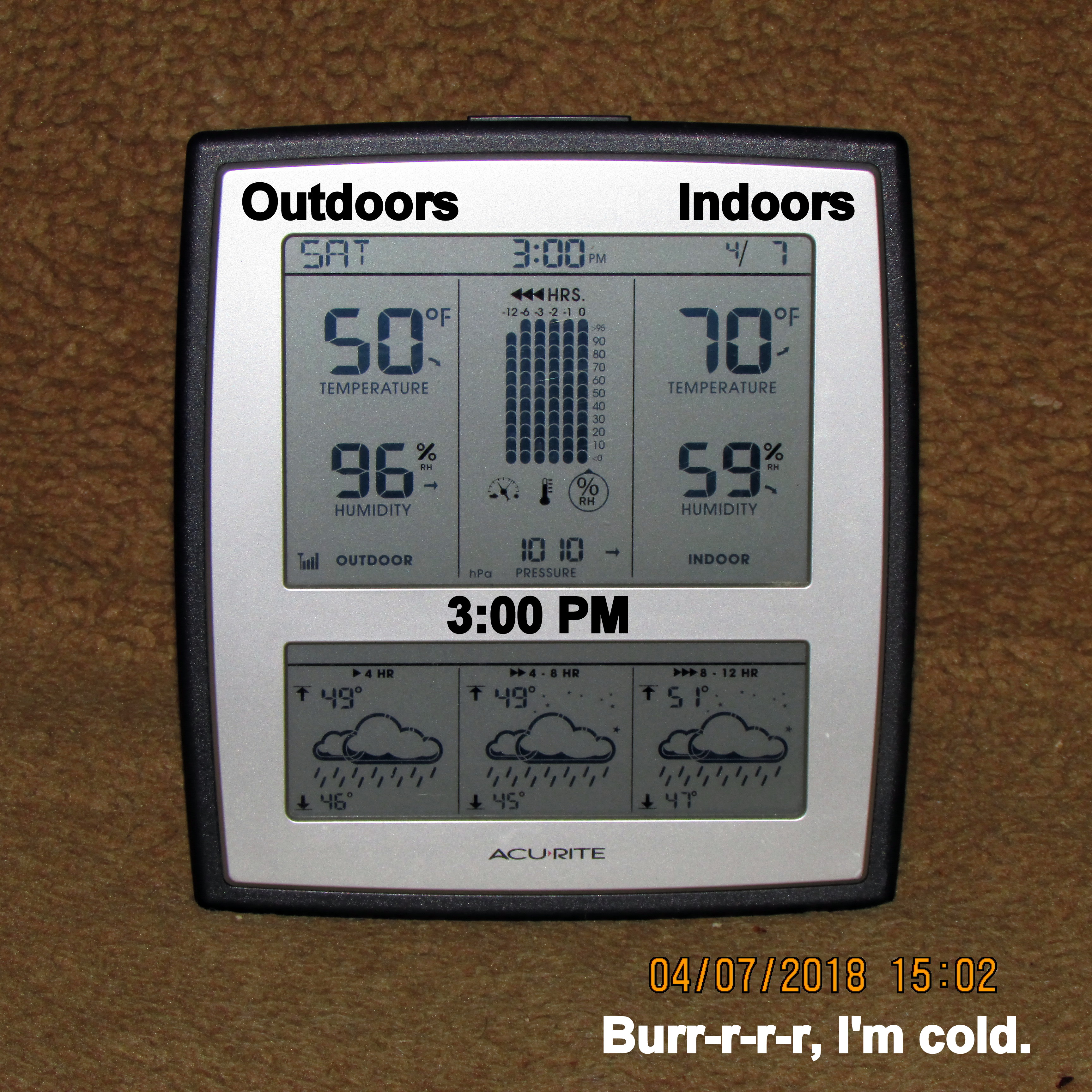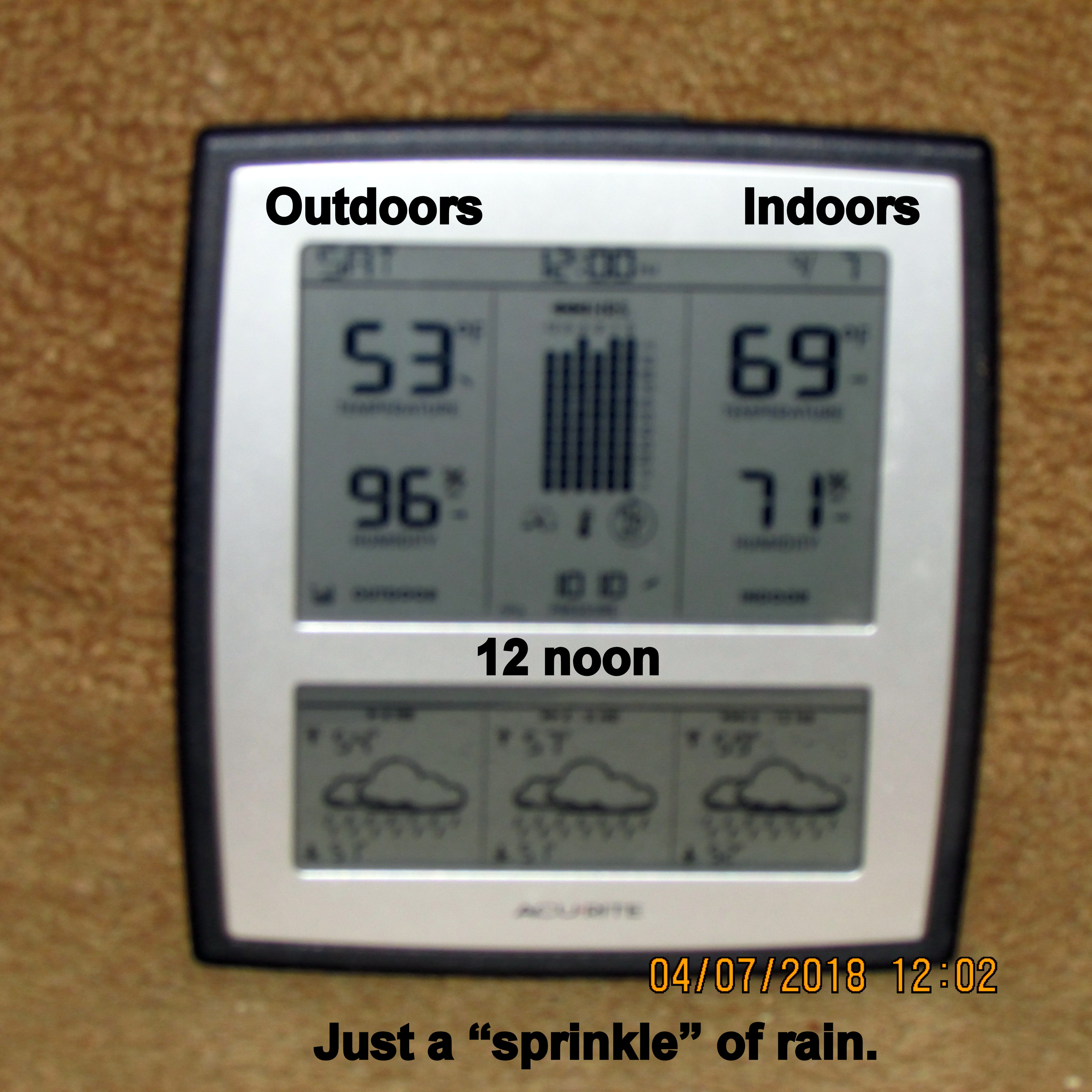 Remember that catchy tune? I’m singing “Catch the falling temperature–on a rainy day–and put it on my blog.” It doesn’t rhyme but “who cares?”!! How many of my readers remember Perry Como? Leave a comment. ~~ I’m reminded of another song: “Raindrops keep fallin’ on my head.” (I was walkin’ in the rain [and got chilled] because a friend asked a favor and a phone call wouldn’t “do.”) Chilled… so I heated up potato soup–and turned on the heater. ~~ While reminiscing about songs regarding rain, we must include Gene Kelly “Singing in the Rain,”