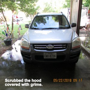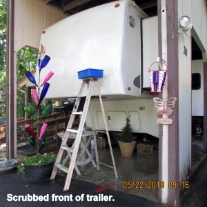 I started my morning washing grime off the front of the trailer, and off the hood of my KIA. Then I trimmed tree limbs.