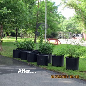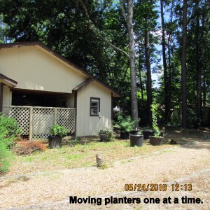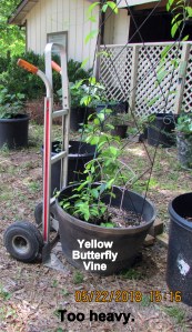 It was more than ninety-two degrees in the hot humid sunshine but I persevered. It’s difficult to tilt a planter on to the hand truck. I needed another pair of hands; two planters did not get moved.