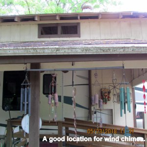 Recently, many bird feeders were removed, emptied and stored because I suspect the birds have flown further North. The only action on the feeders: SQUIRRELS. So the packed-away-out-of-sight wind chimes were introduced to my patio.
