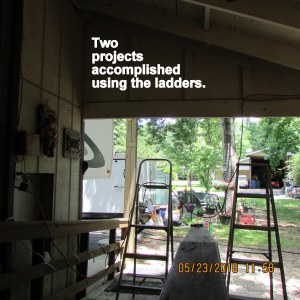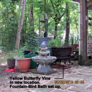 Not a single penny spent on projects this morning. From my personal “hardware store,” the hooks I needed. Furthermore, I already possessed the proper length electric extension cord for (eventually relocated)) fountain-bird bath.