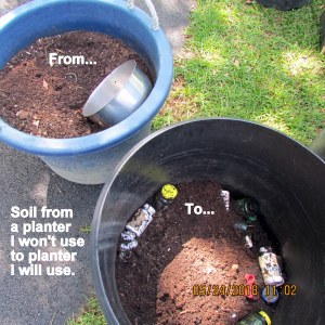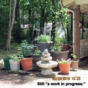 “The yard” is high on my priority list. I’m obsessive-compulsive and want satisfaction “yesterday.” This morning, I pushed myself to get planters moved and soil transferred from one planter to another. “Shoulda” waited for a strong healthy young man but helpers are scarce.