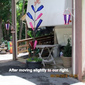 No pictures; forgot the camera. I drove into Livingston to specifically unload a lot of donations for the Habitat for Humanity Resale store. I need space in the KIA to move a bottle tree from a CARE resident site. I set up the display more than a year ago. The resident is moving… so bottle tree is, likewise, moving (her place to my place).