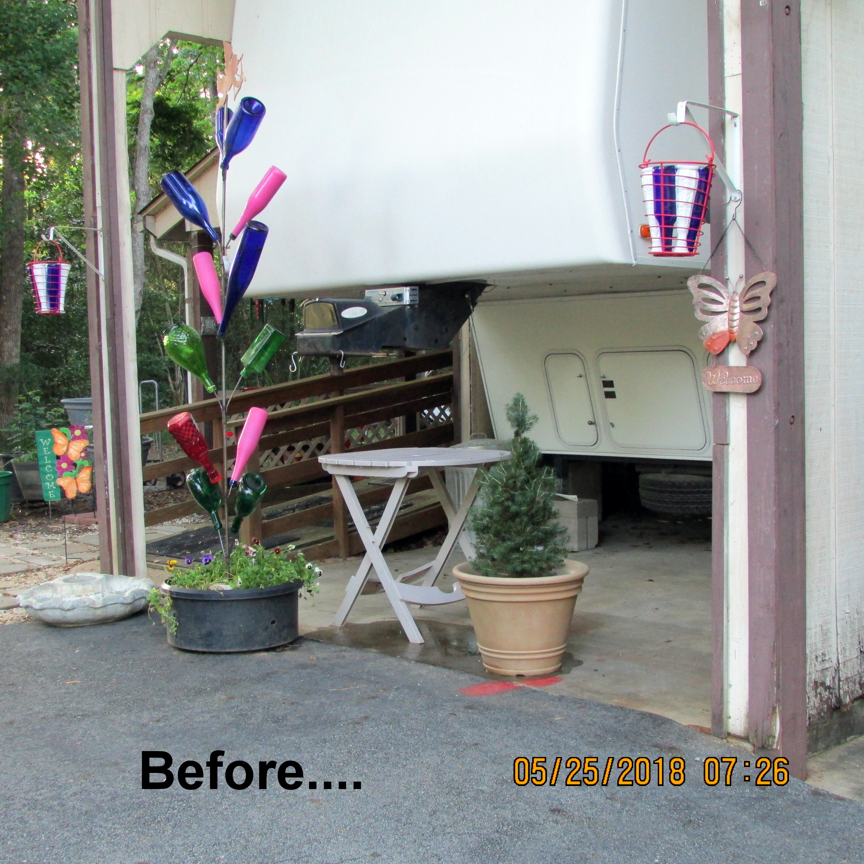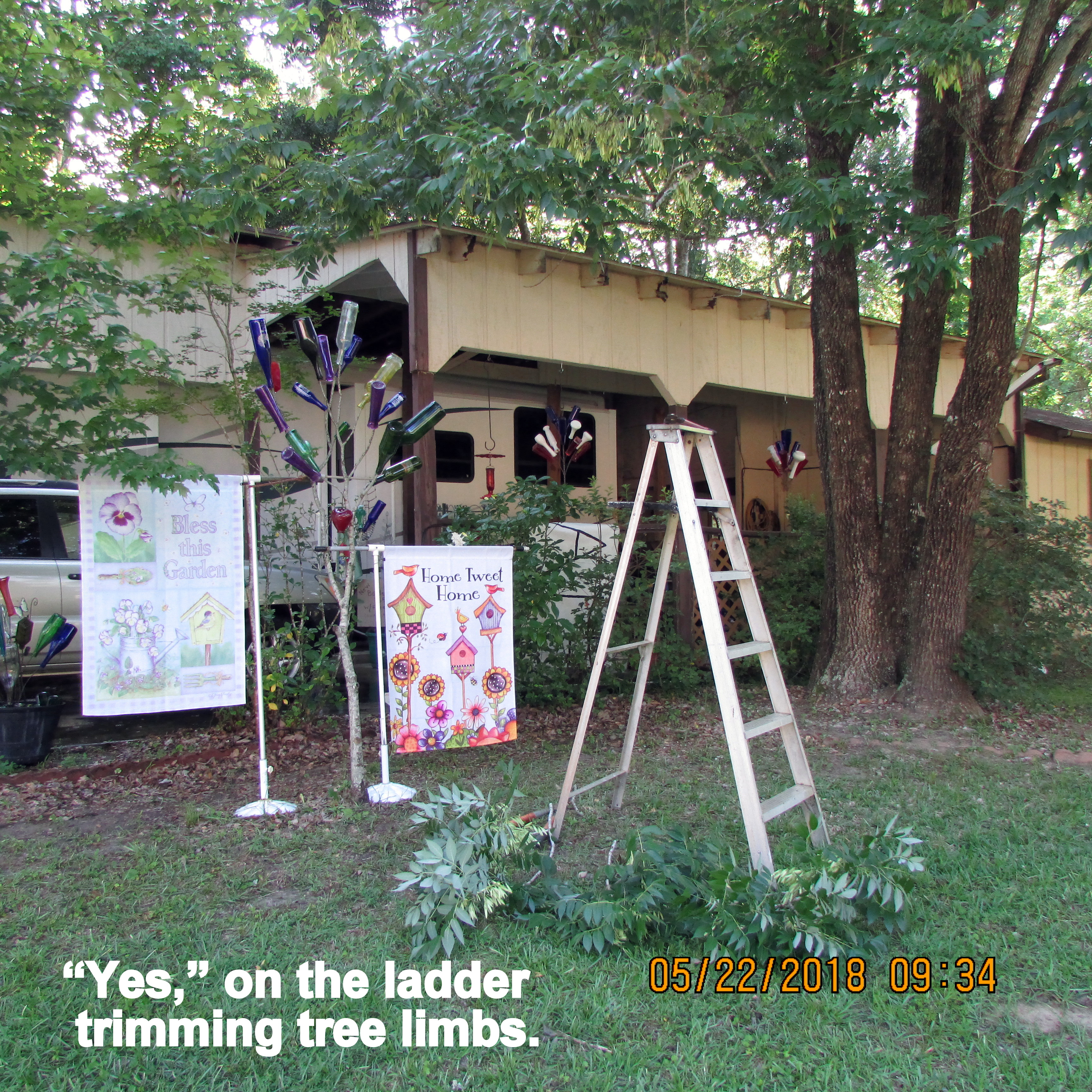 I started my morning washing grime off the front of the trailer, and off the hood of my KIA. Then I trimmed tree limbs.