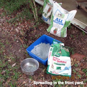 I was “downsizing” (lol) by using old bags of fertilizer on plants and lawn. (Not my purchase; part of the clutter I inherited when I moved here.)