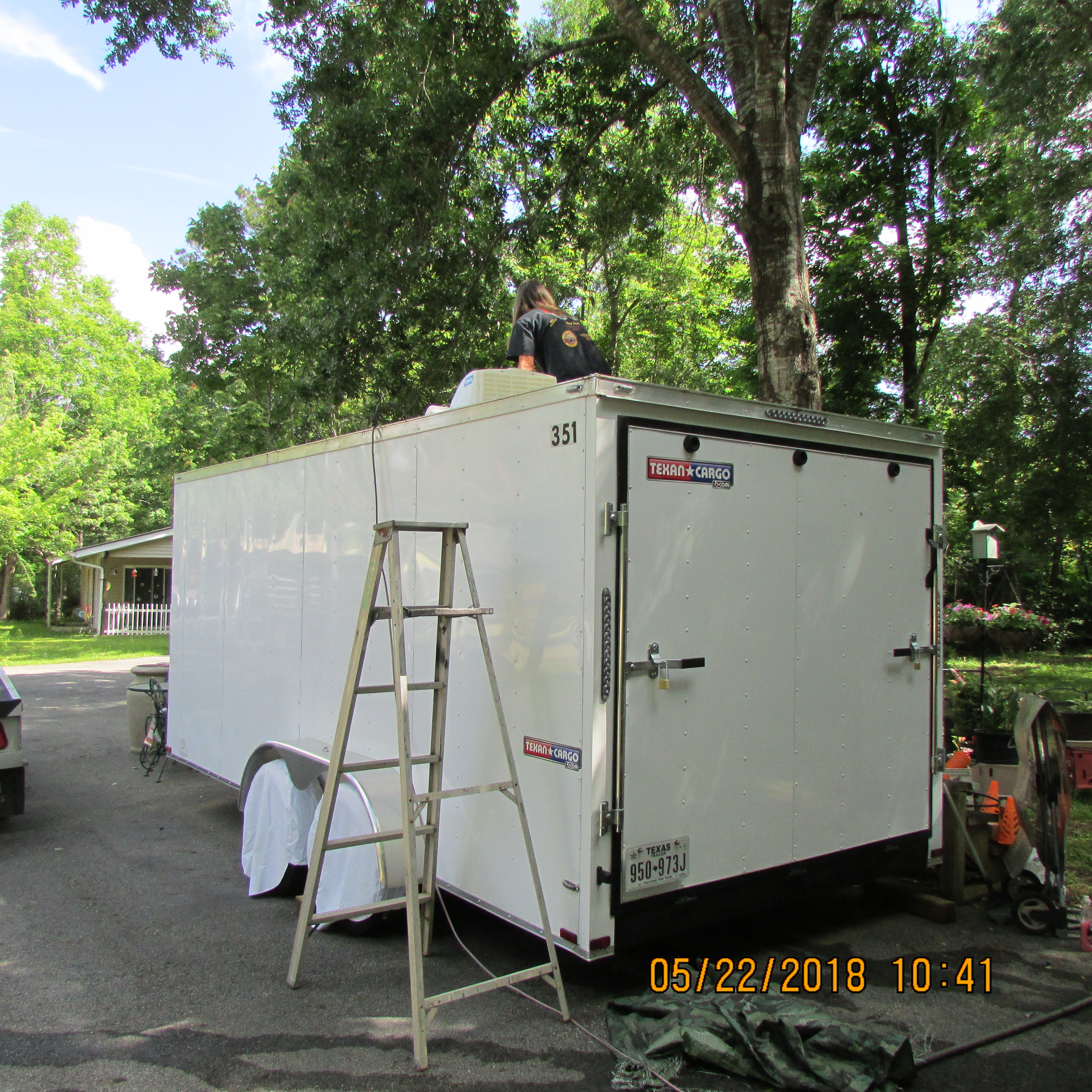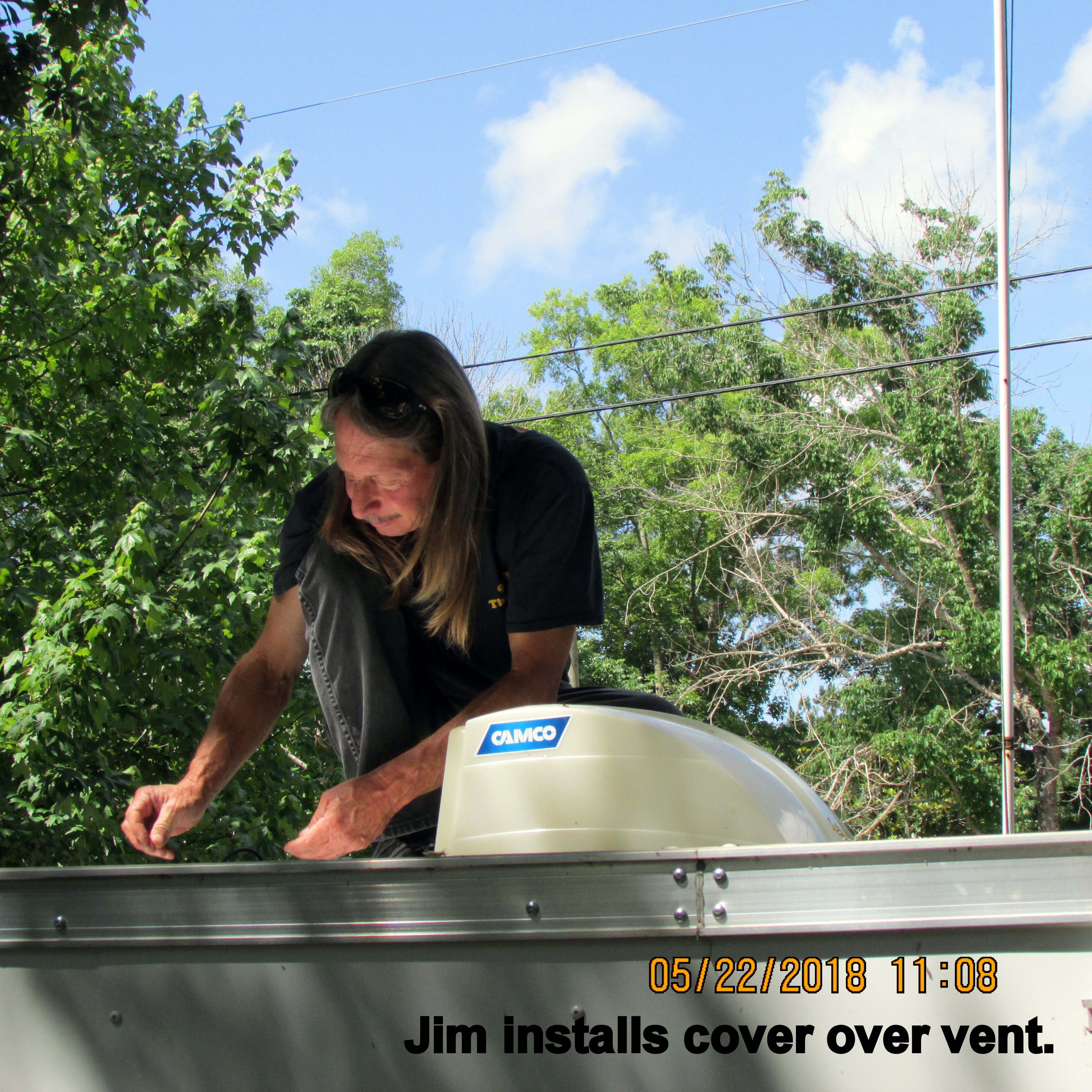 My friend, Jim, arrived and installed the cover over the vent on the cargo trailer.