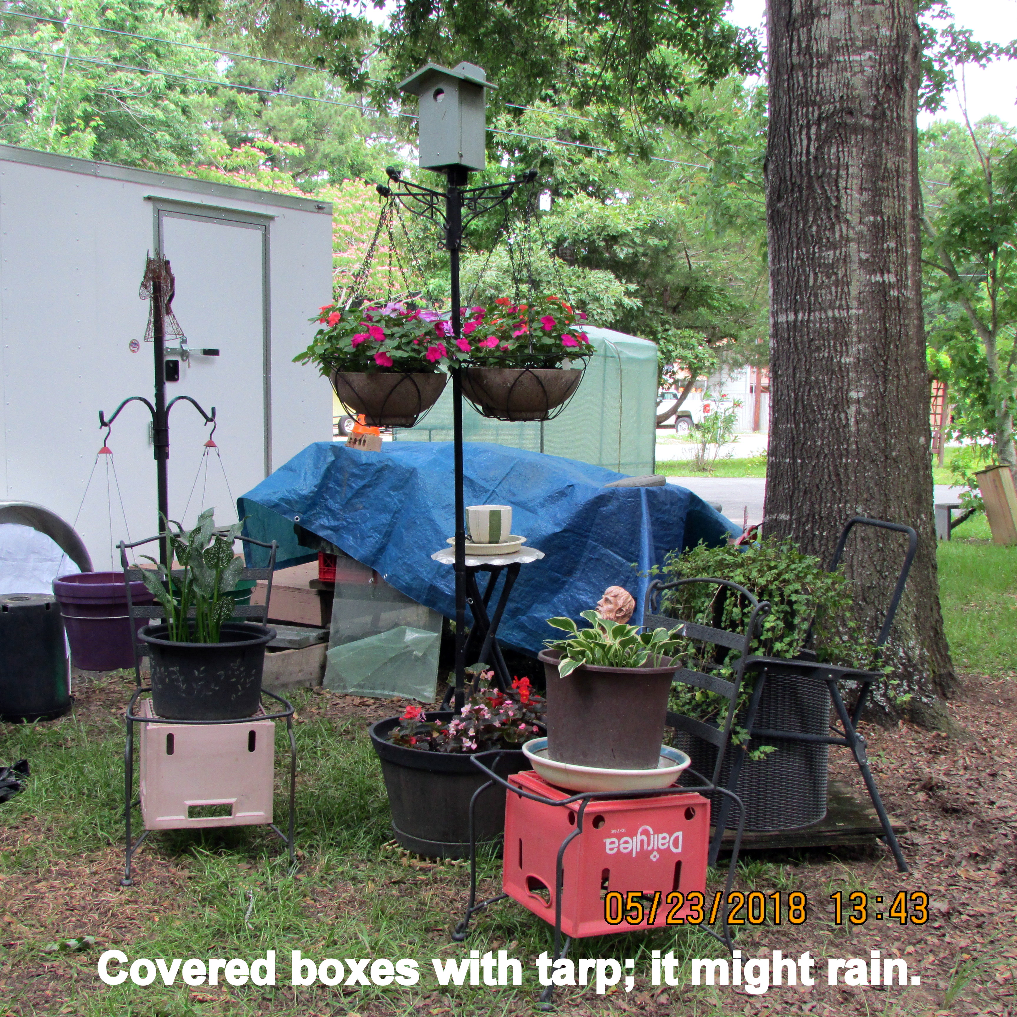 The TV meteorologist did not predict rain in our area but I covered boxes “in case”…. Gratefully, just the “hint” of rain has cooled the air.