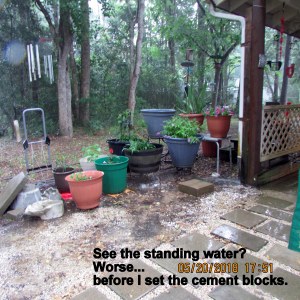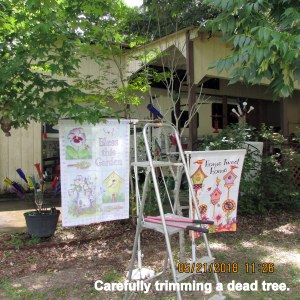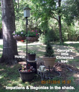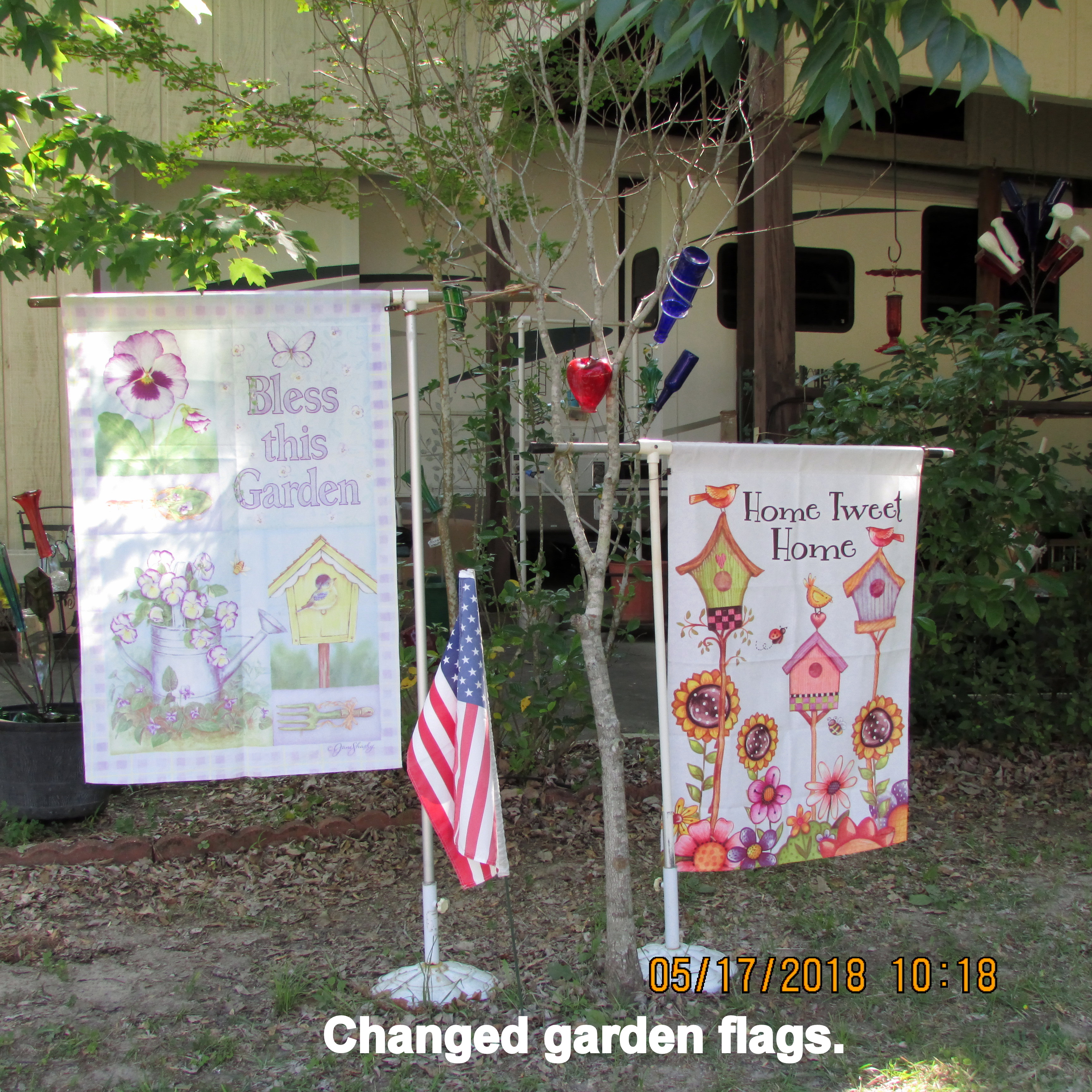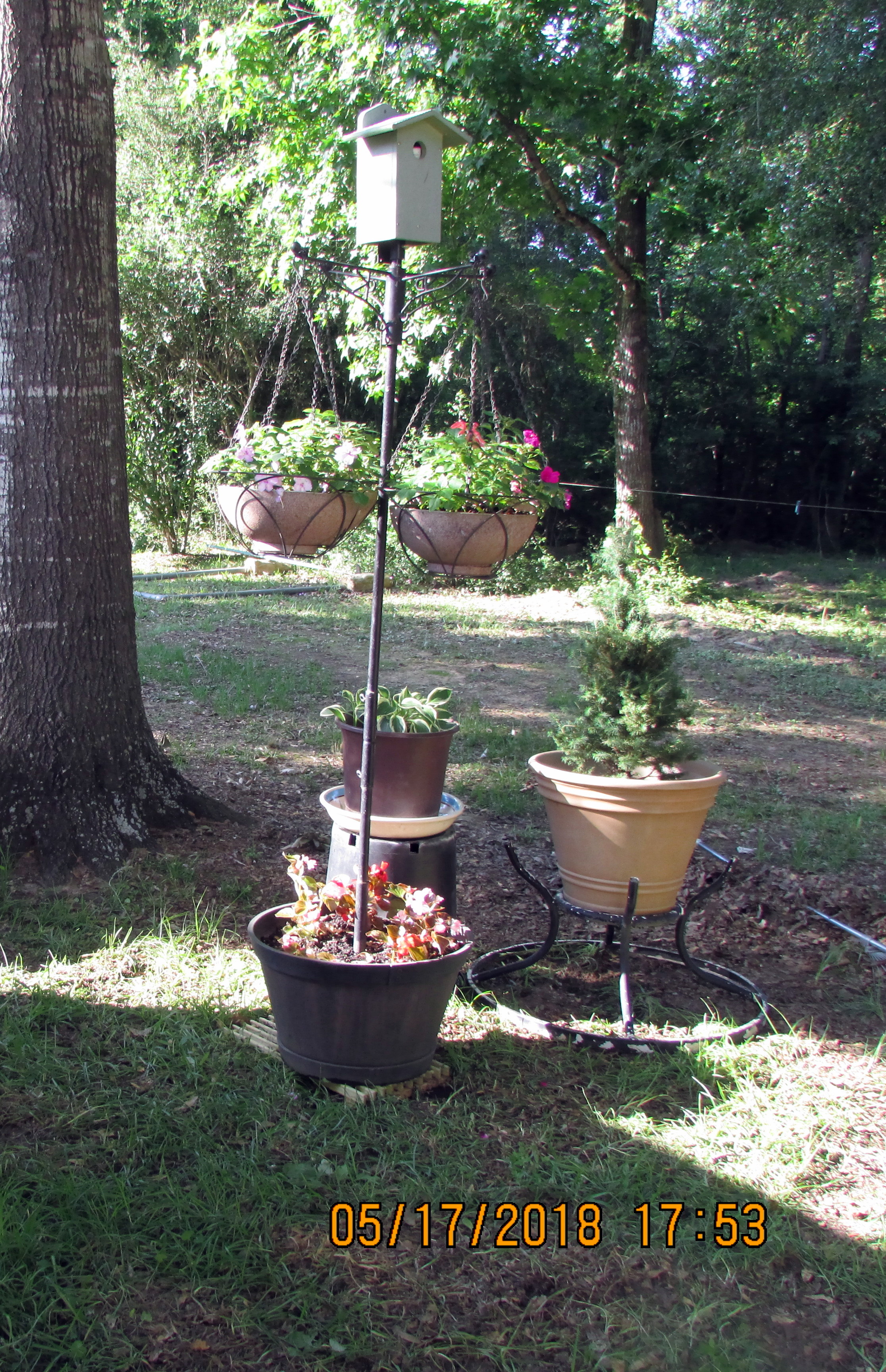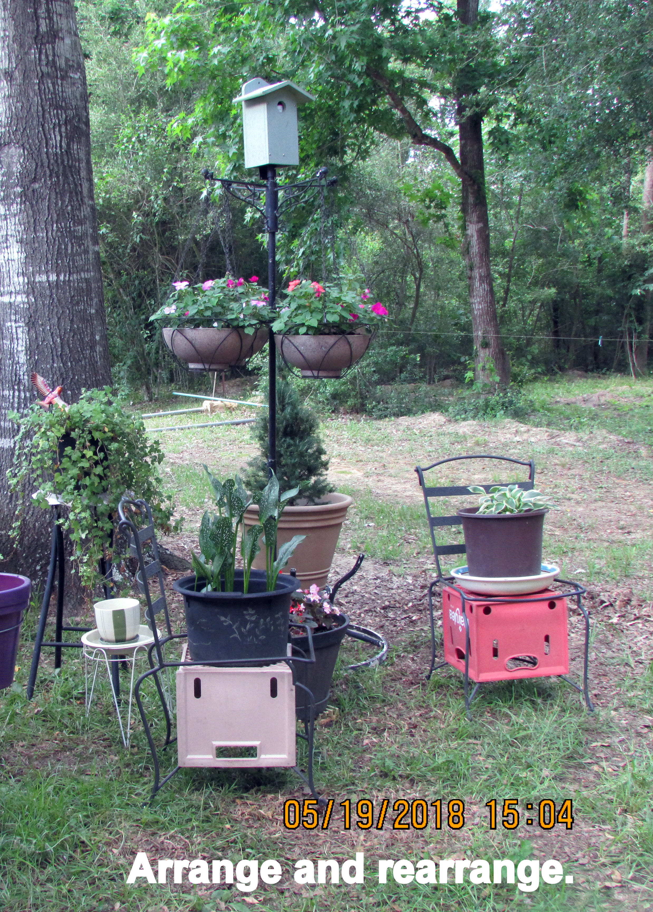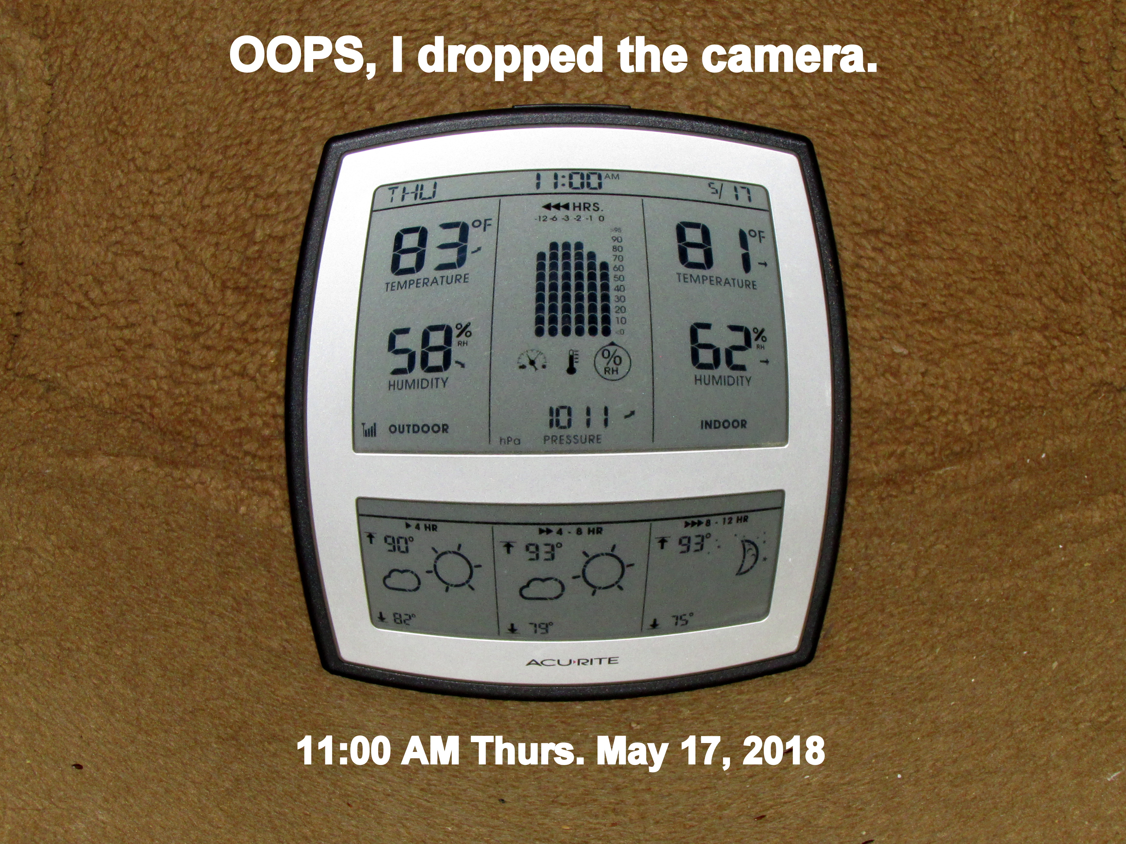 “Yes,” time spent in the yard. When I grabbed the garden hose to wash an area of the driveway, NO WATER. I checked for kinks in the hose and found none; I came into the trailer to double-check. NO WATER (several properties are on a well) . So I made a cup of coffee (from my filtered water supply), fixed a bowl of cereal and started this message. Earlier, I took down yard sale signs and removed evidence of a yard sale. More preparation for eventual planters shuffle. ~~ Hey, seventy-eight degrees doesn’t appear hot but look at the ninety percent humidity!!