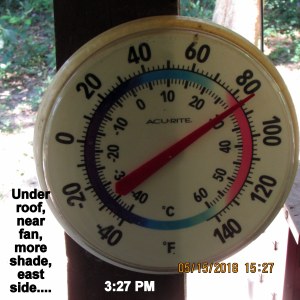 Hottest day of the year so far. I felt compelled to document the temperature (although most readers aren’t interested). ~~ Today I almost had a stroke and heart attack. “Heat stroke” because I was in and out of my hot KIA, on hot parking lots, in and out of stores shopping for groceries and other essentials. “Heart attack” because I spent an astonishing $181.00 on “essentials” at CVS.