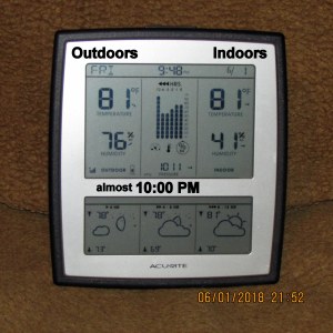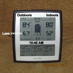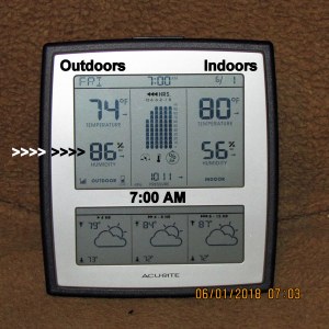 Yesterday–all morning–I was able to work outdoors. Not so this morning!! That seventy-four degrees is deceiving because “feels like” walking into an oven. ~~ Check back; more later.