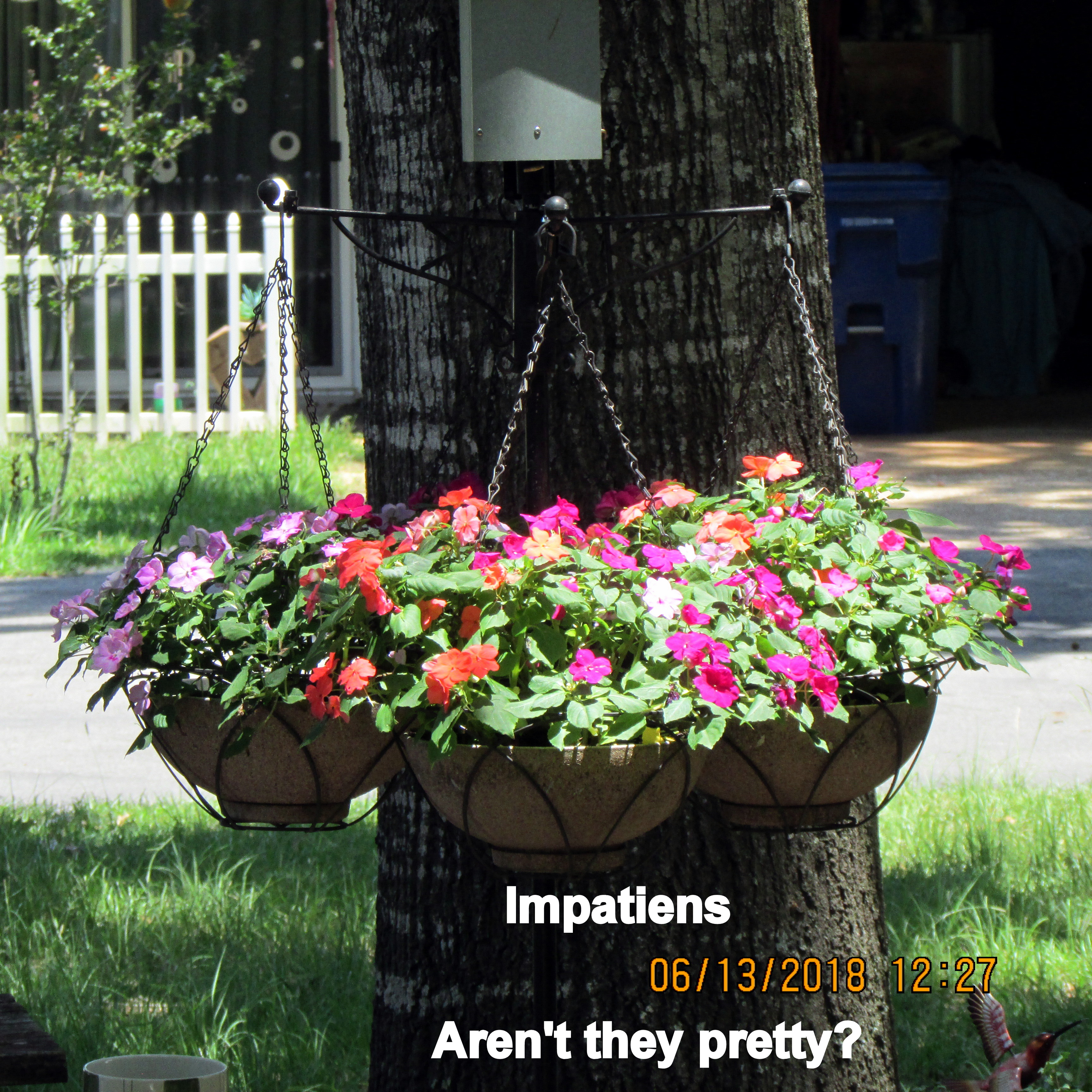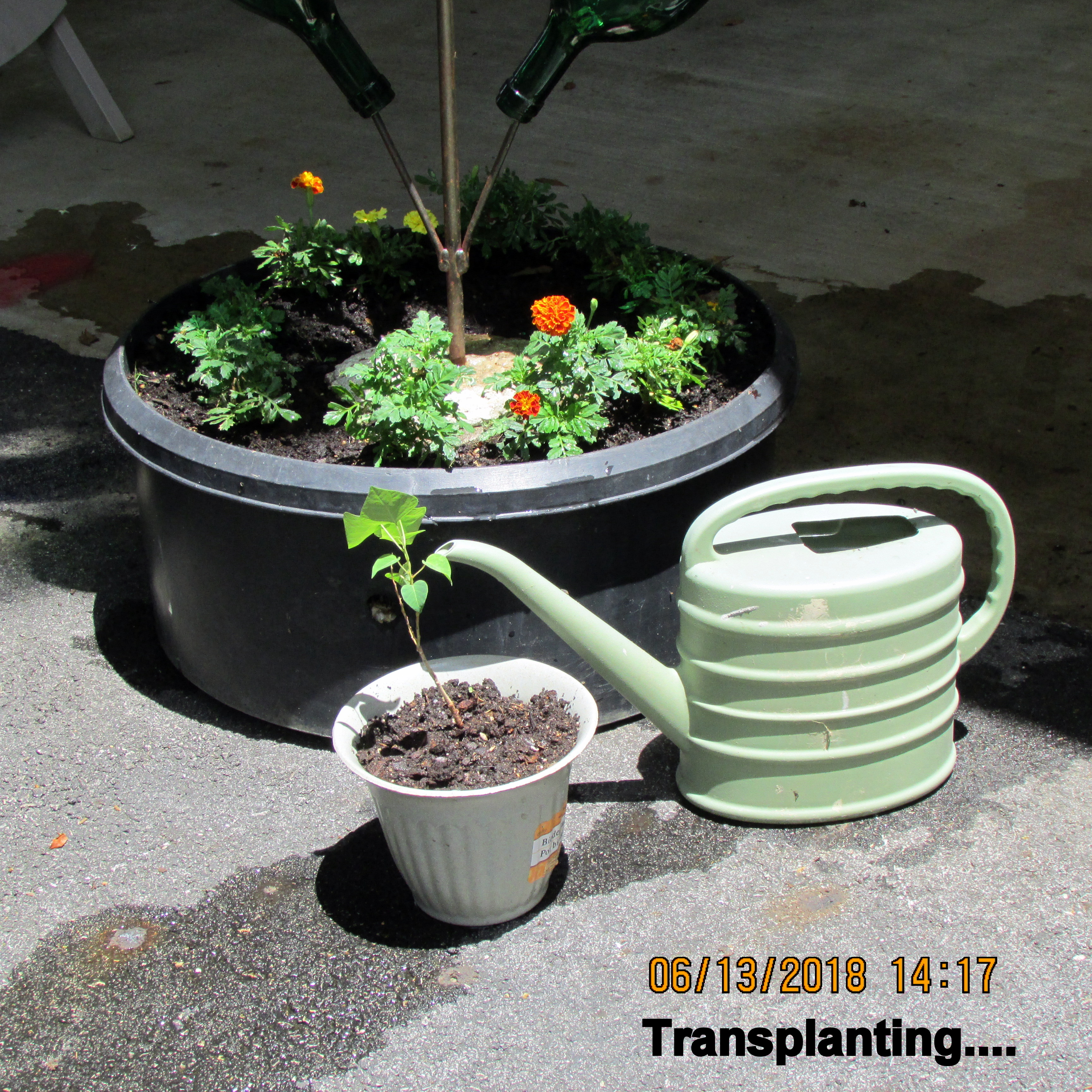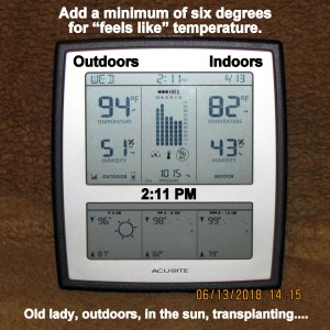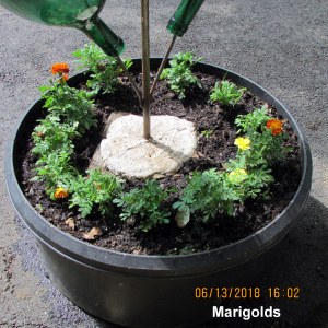 OBSESSIVE-COMPULSIVE: I can’t stay indoors where it is relatively cool. Working in the yard is my therapy for depression. ~~ A friend brought me a “sick” plant to nurse (and I transplanted to a larger container). ~~ The Pansies were past their prime and Marigolds were ready to take their place. ~~ Indoors and outdoors, I’m uncomfortably “hot”!! Perhaps I should lower the temperature inside my trailer home??