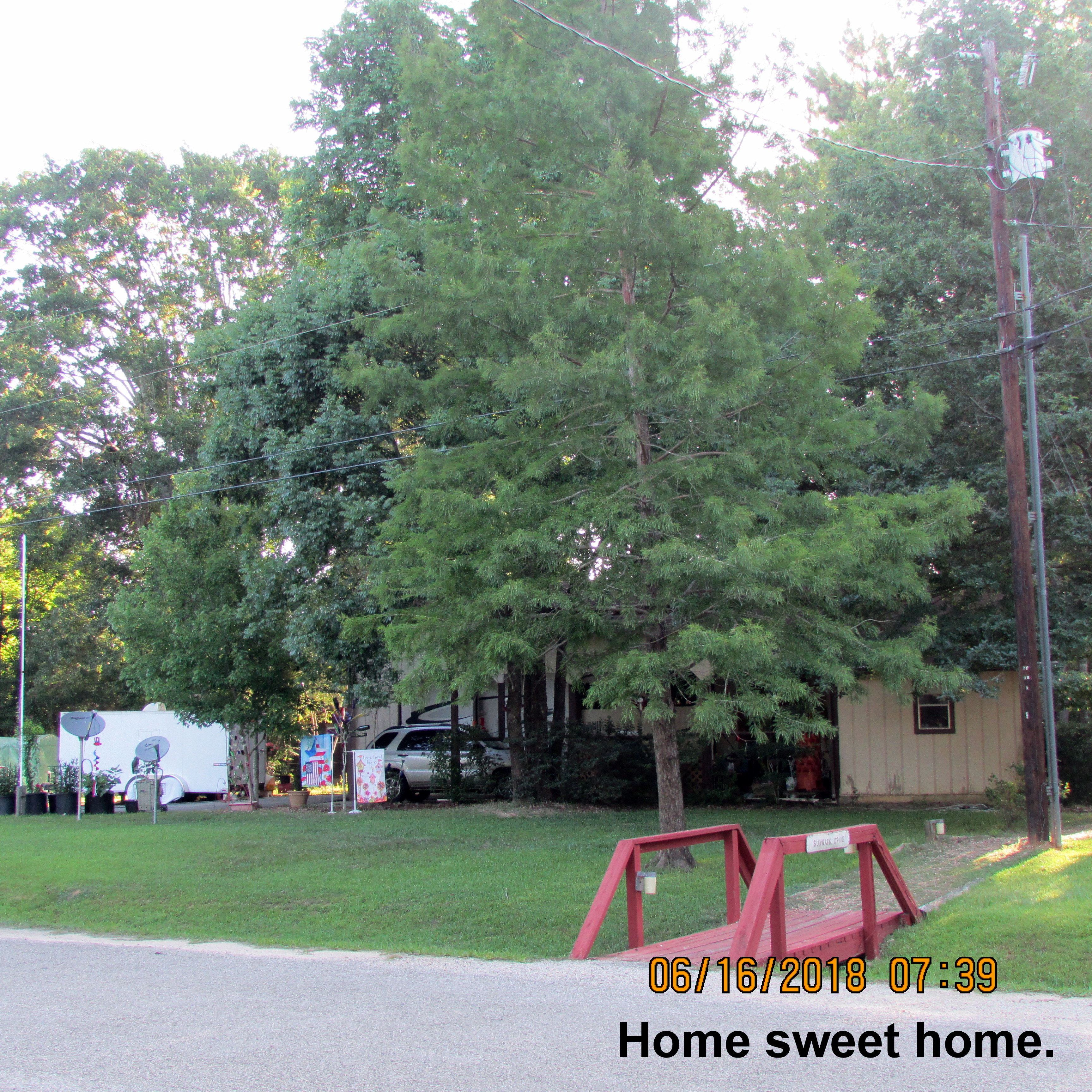 Saturday satisfaction !! Jun16 by Lorraine Frantz Edwards Admiring my yard after a young woman neighbor mowed and manicured my yard (yesterday). A big tropical storm is on the horizon so, hopefully, lawn and trees will be saturated. I’m eager for some cooler temperatures! Share this: Click to share on X (Opens in new window) X Click to share on Facebook (Opens in new window) Facebook Like Loading...