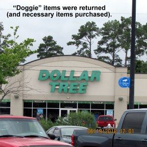 The refrigerator seems stuck on sixty-three degrees. It’s no wonder some of my food items spoiled (recently). Today, a bare minimum of perishable food purchased. ~~ “Yes” several items for my lawn and garden. A birthday present for my friend, Jim. ~~ “Doggie” items returned to Dollar Tree because Gabriella and the pups were gone before I had an opportunity to pamper them. ~~ For Lorraine: An apple fritter and coffee for breakfast; Subway “veggie delight” sandwich mid-afternoon. Also, mid-morning, extremely much-needed haircut!! ~~ (My “grid” is the little piece of land identified as 351 Escapees Dr. [and I’m rarely “off” the grid].)