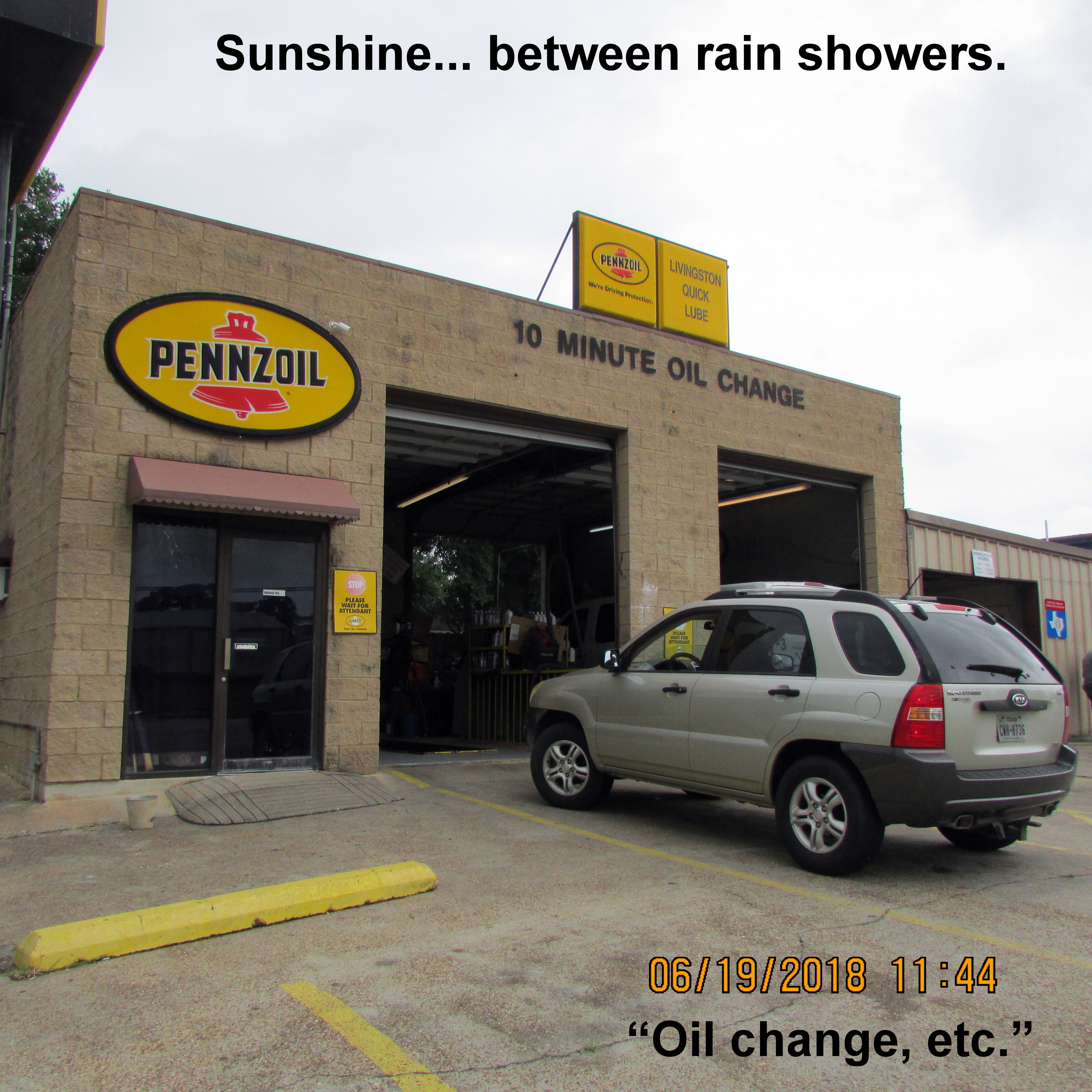 Five o’clock in the evening!! No early morning blog message today. The cool weather–with occasional rain–was an invitation to work on projects under cover of the patio, or carport (at home). However, the KIA is my priority right now. I firmly believe my Heavenly Father–or guardian angel–cared for my sadly neglected transportation. (When I moved to the CARE Center, my “focus” changed substantially.) No picture, but I made an appointment with an auto repair shop before visit for oil change.