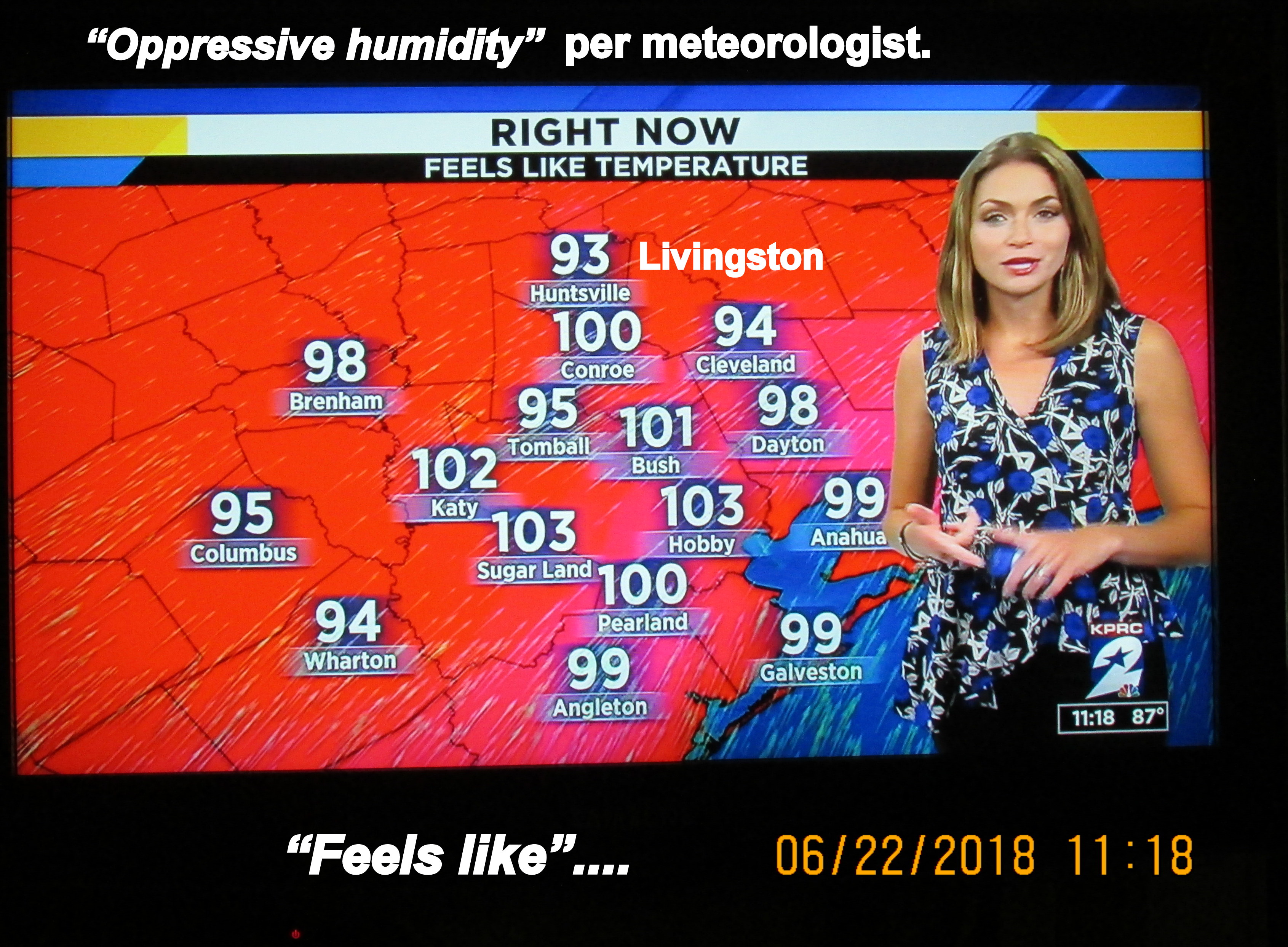 That’s an emphatic statement from Houston TV meteorologist (at 7:25 AM). I’m so lethargic, I can hardly move. My body feels “beat up” but I didn’t do any strenuous exercise yesterday (and I won’t do today).