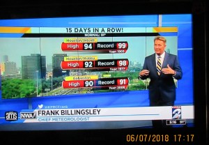 Monday, June 4, 2018: A trip around the yard revealed little damage but lots of debris. Side note: The A/C has been “off” for twelve hours. That’s awesome!!