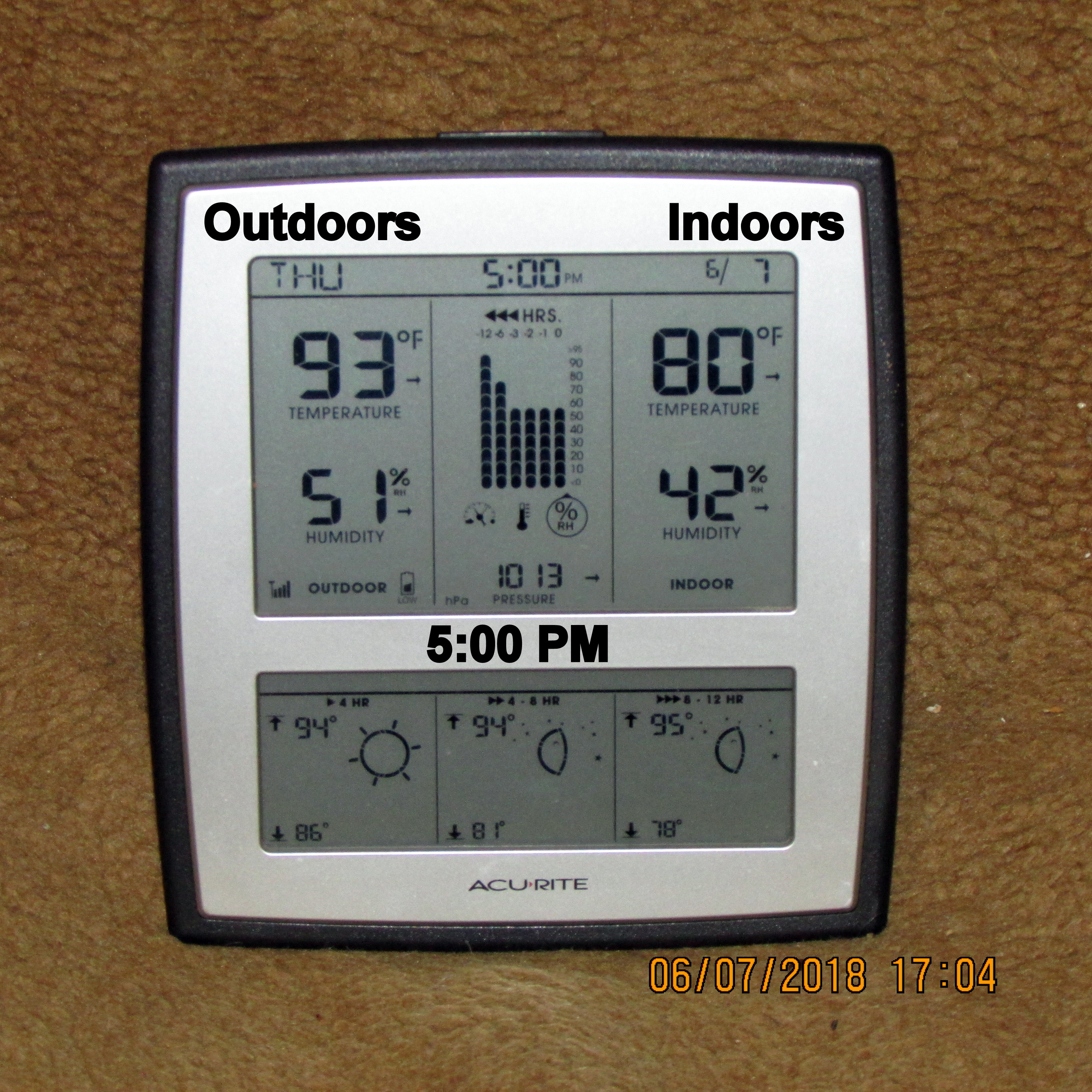 Monday, June 4, 2018: A trip around the yard revealed little damage but lots of debris. Side note: The A/C has been “off” for twelve hours. That’s awesome!!